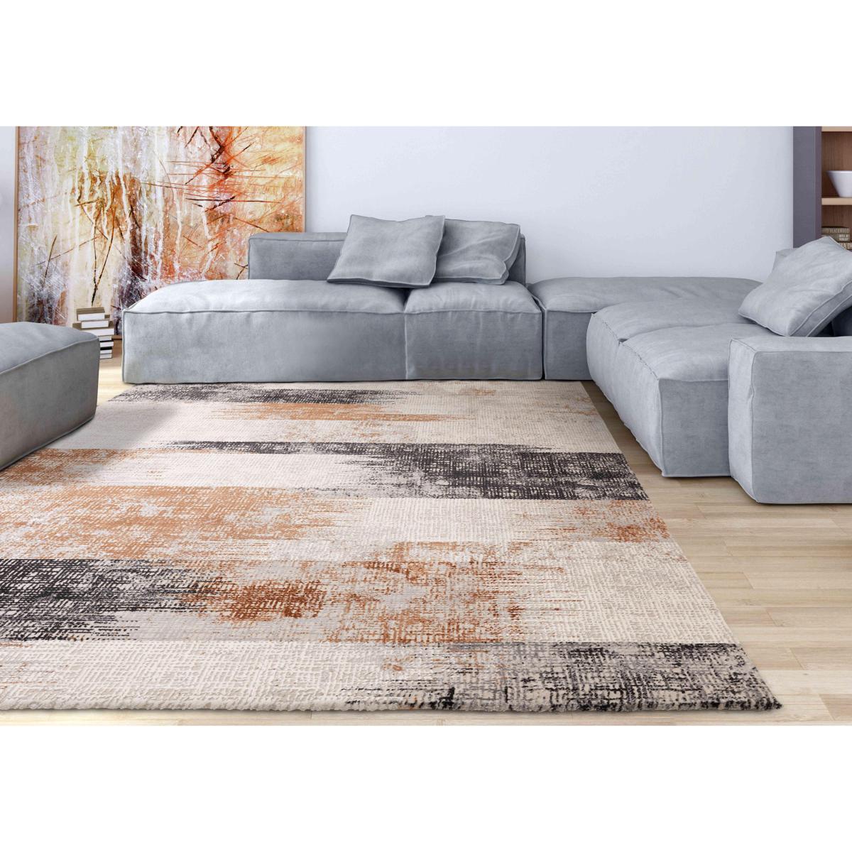 With broad abstract swathes of colour combined with soft neutral tones, this eye-catching modern rug showcases an abstract painterly style influenced by popular ikat design. Why you'll love it Beautiful modern rug with a painterly feel is a work of art for your floor. Abstract design shows the influence of ikat patterns. Velvet-soft multi-dimensional pile feels warm and cosy. In a wide choice of contemporary colourways and versatile sizes. This rug is part of the Furniture Village home accessories collection. What you need to know Shallow textured pile. For indoor use only. Easy to clean – vacuum regularly. Blot stains; do not rub.