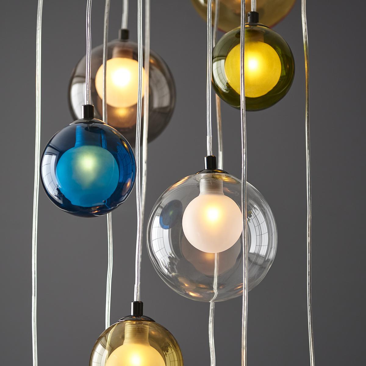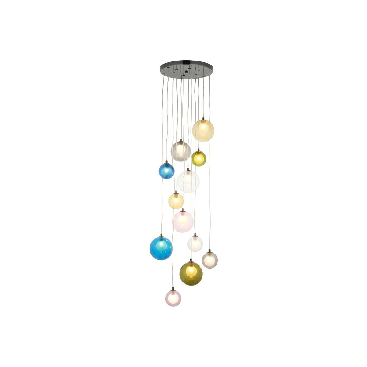Kwan 12-Light Cluster Pendant in Multi-Coloured Glass