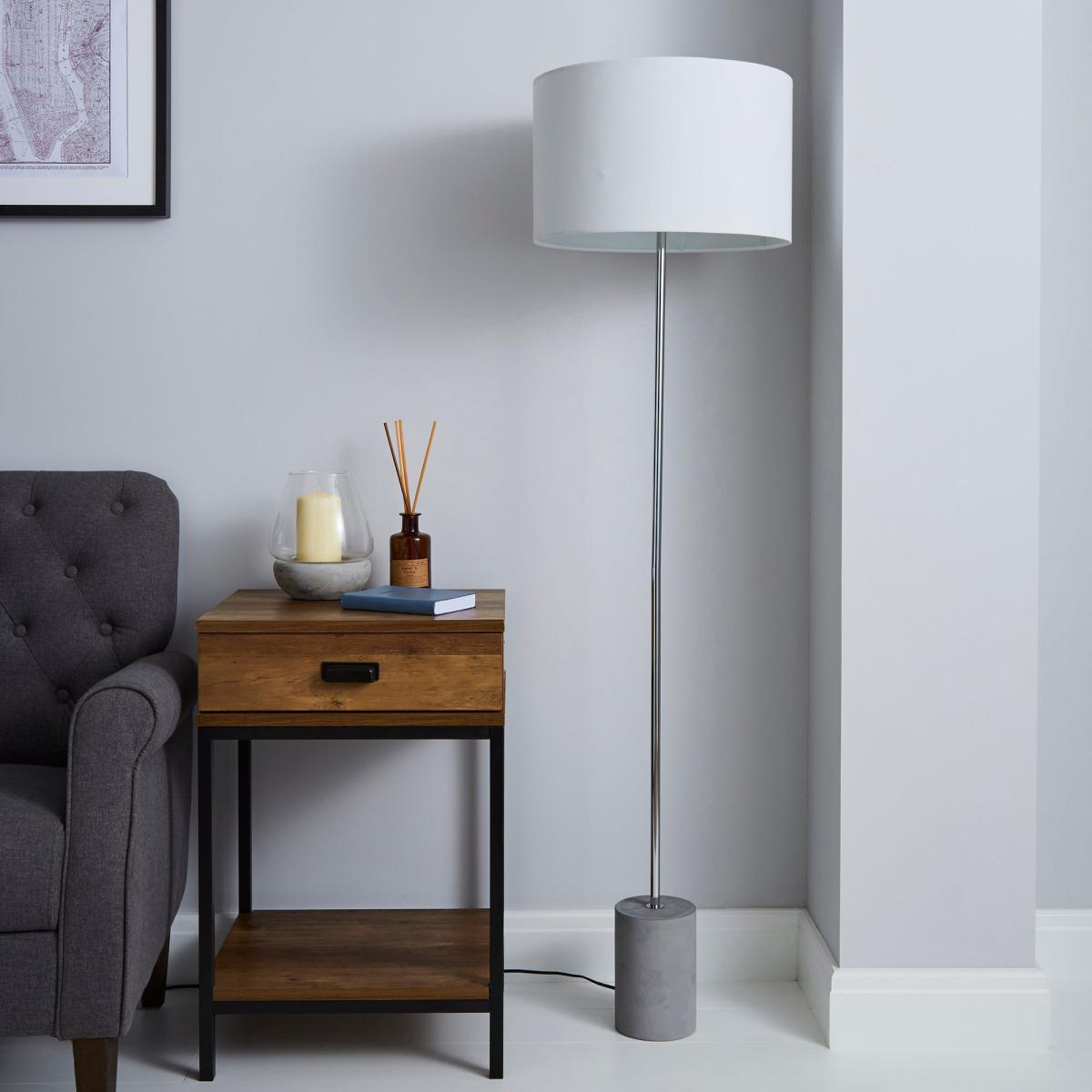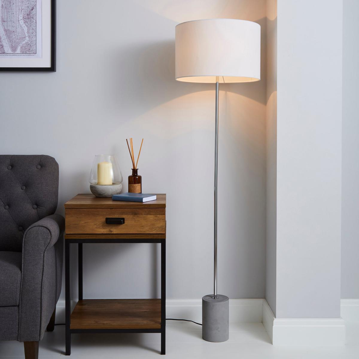 I really like the Kya concrete base floor lamp because of its sleek, minimalist look that complements contemporary and industrial interiors alike. The grey concrete base adds texture and subtle colour, making it versatile for both neutral and more vibrant schemes. It works particularly well in living rooms or reading nooks where you want a functional yet understated statement piece. For styling, consider pairing it with soft textiles or warm-toned accessories to add contrast, or keep accessories minimal for a clean, modern vibe. Its slim profile ensures it doesn’t dominate a space, making it perfect for corners or beside a statement sofa.