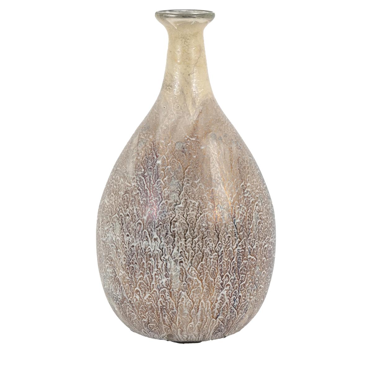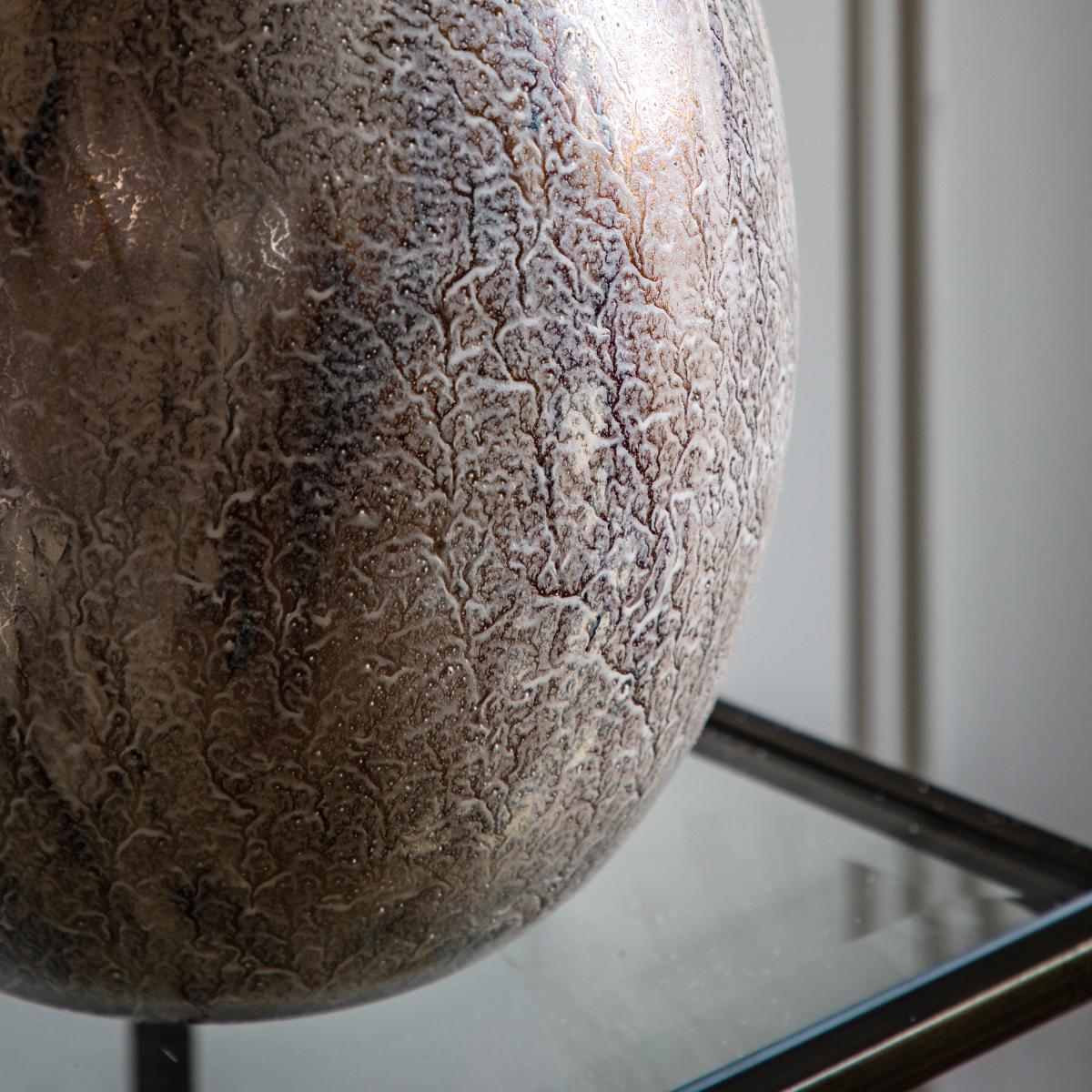 This organic mouth blown glass vase has a beautiful antique gold finish making it a statement feature for any home.