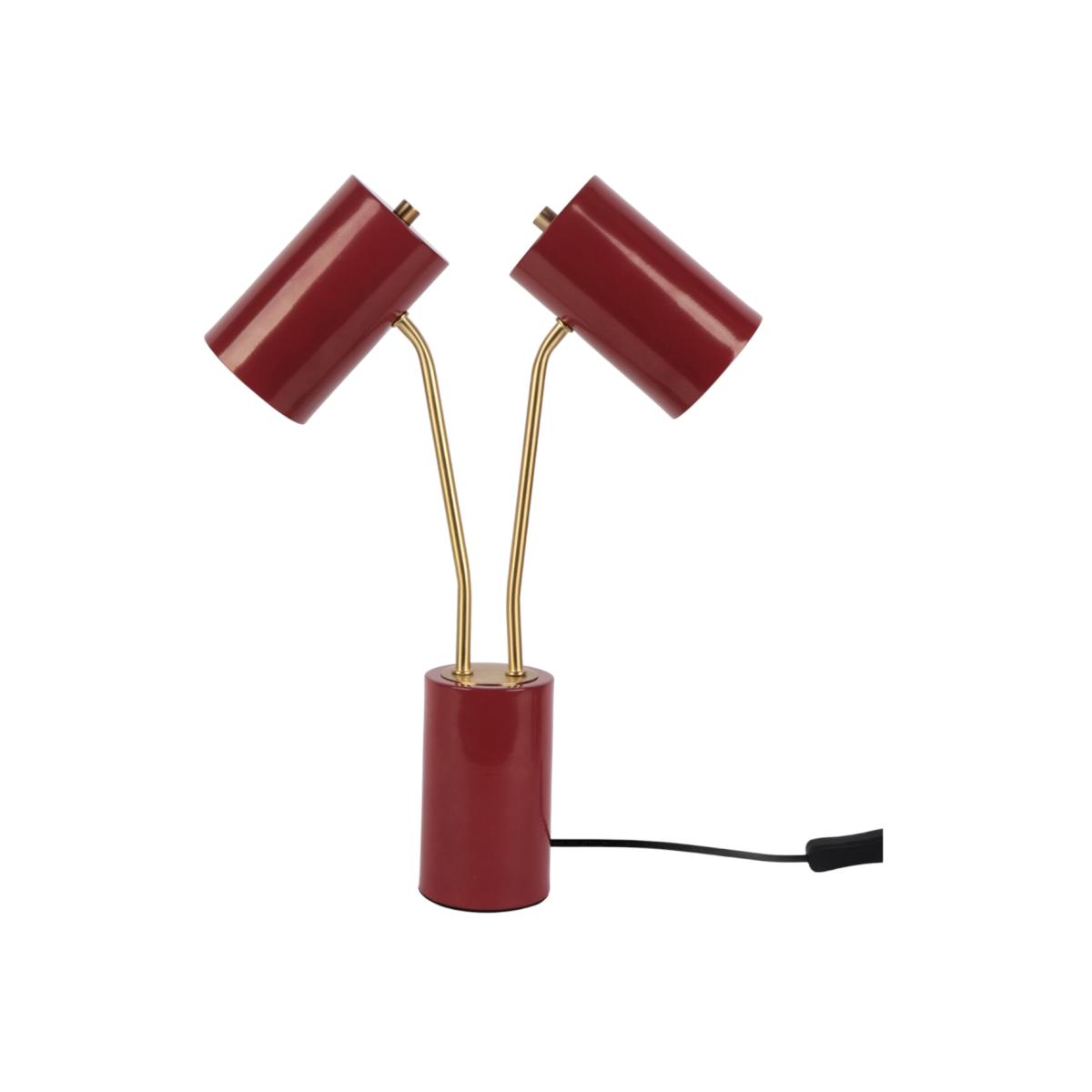 Add a pop of colour to your home with the Kyaire 2 Way Table Lamp. Featuring a deep red finish with golden accents, this lamp adds an elegant touch to your interiors. Great for contemporary or eclectic homes, it features a two-way design with cylindrical-shaped shades and a base. Ideal for any room across your home, place it by the bedside or on the desk for focused lighting or simply on the mantel to enhance your decor.