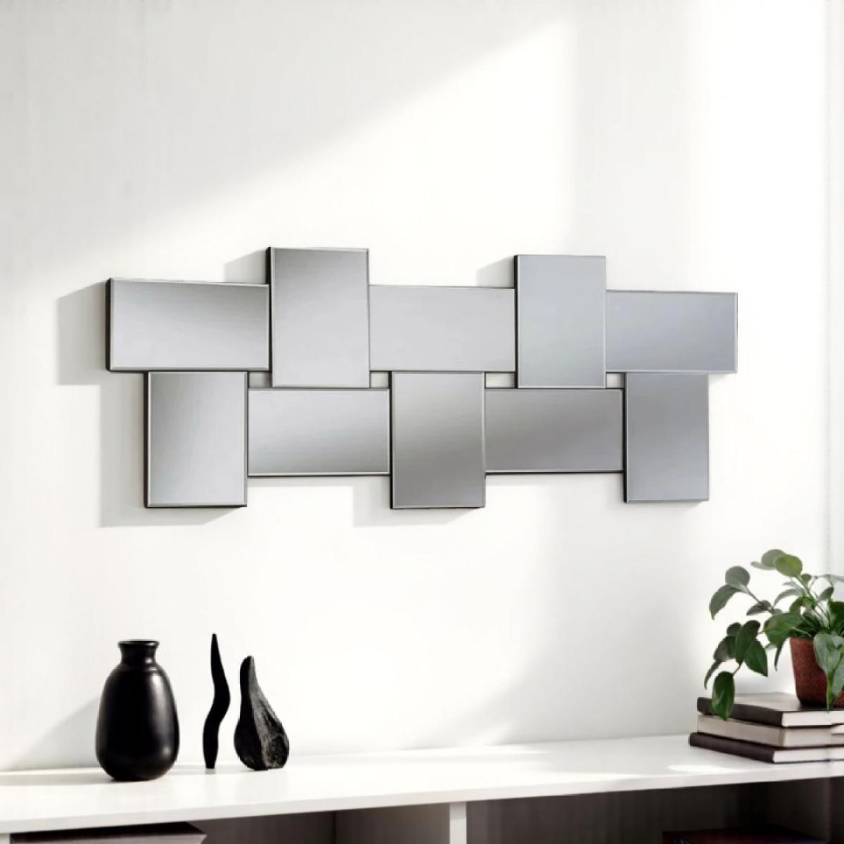 A stylish addition to your home. This eye-catching mirror consists of brick floating glass panels creating one large rectangle. This modern-looking geometric mirror will look great in modern homes and give the impression of space in living areas and halls. A stylish addition to your home. This eye-catching mirror consists of brick floating glass panels creating one large rectangle. This modern-looking geometric mirror will look great in modern homes and give the impression of space in living areas and halls.