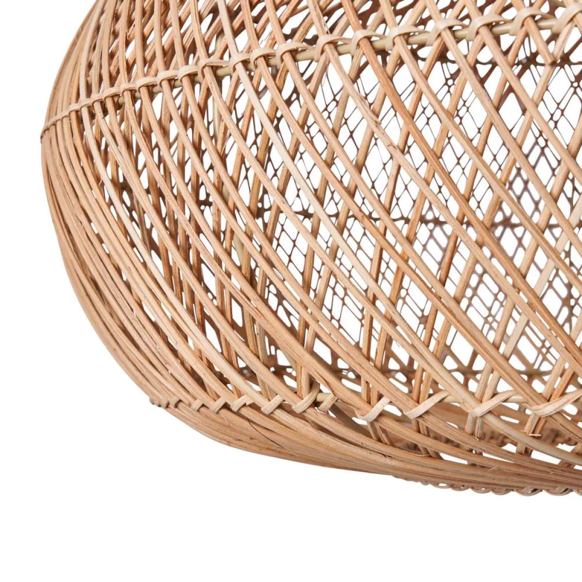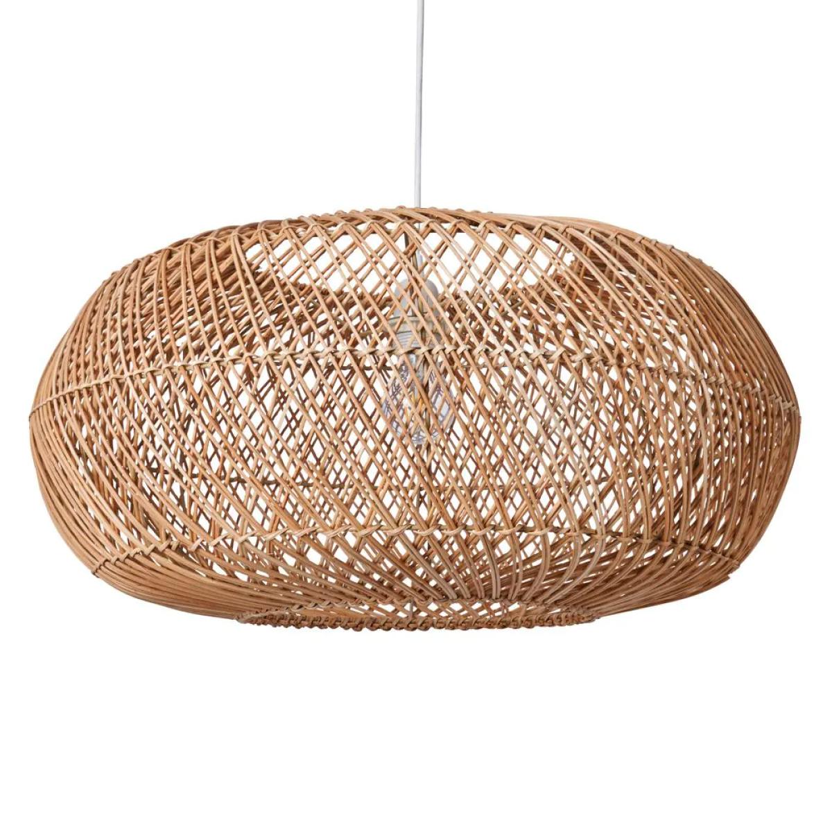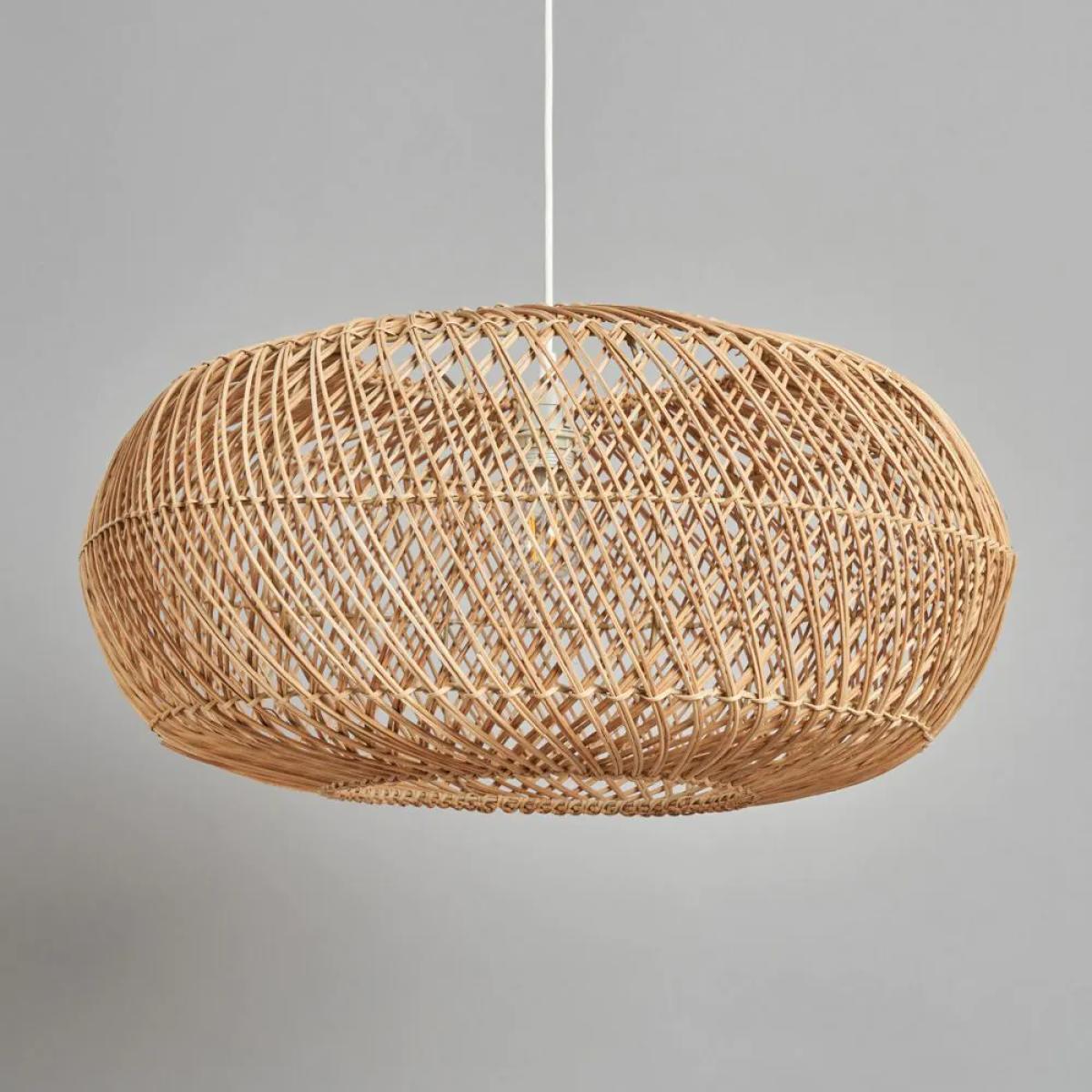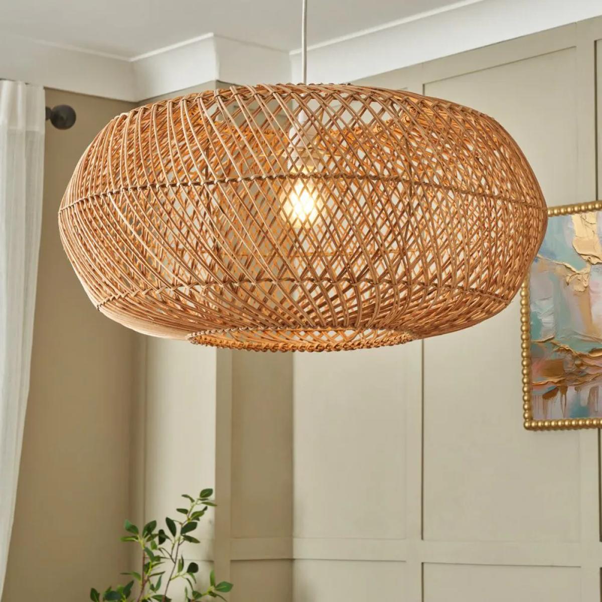 I love this oval rattan shade because it brings a natural, laid-back vibe to any space. Its organic material and open-weave design make it ideal for relaxed, coastal, or bohemian interiors, but it can also soften more contemporary schemes when paired with sleek furniture. Practical styling tips include keeping the colour palette neutral or adding tactile layers like linen or jute to complement the natural look. It works particularly well in open-plan living areas or over dining tables, where its airy silhouette allows for excellent light diffusion. This shade is a versatile piece that adds warmth and texture, making it a stylish focal point in both residential and hospitality settings.