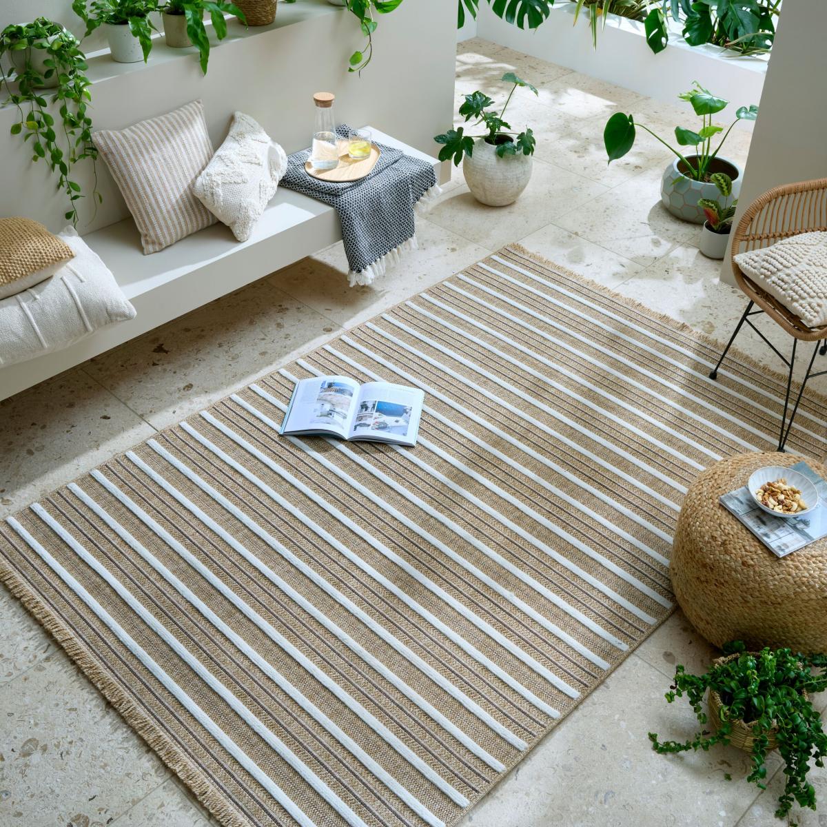 * Natural Look & Design * Easy Care - Low Maintenance * Indoor/Outdoor Suitable Transform your outdoor space with the Kylo Striped Indoor Outdoor Rug, designed to combine style and practicality. Made from easy care polypropylene, it is easily able to withstand the elements. This rug brings lasting beauty to your patio, deck, or garden. Its versatile design also makes it a great addition to your indoor spaces. The rug pictured is: 160cm x 230cm. Care Instructions: Unroll your rug and leave for 24 hours before use. Maintain your rug by shaking to remove trapped dirt and debris. Outdoor rugs are easy care and can be hose cleaned, for smaller spills blot with a clean cloth and leave to dry. Rotate every few months and bring indoors in adverse weather to prolong the life of your rug. When using this rug indoors add an anti-slip to prevent slipping.