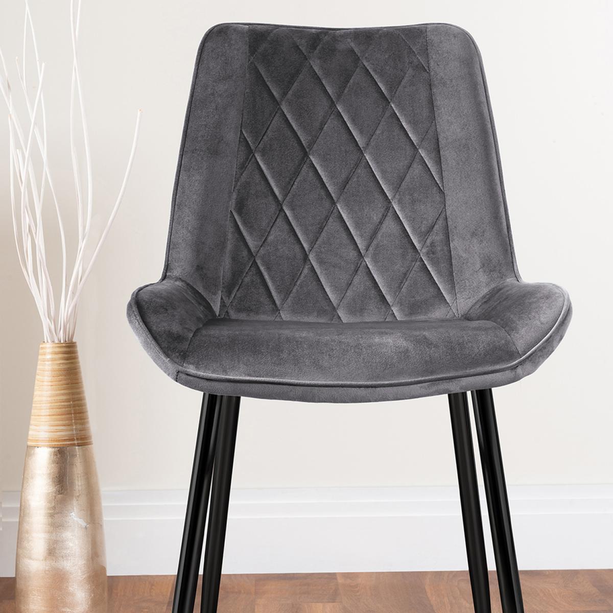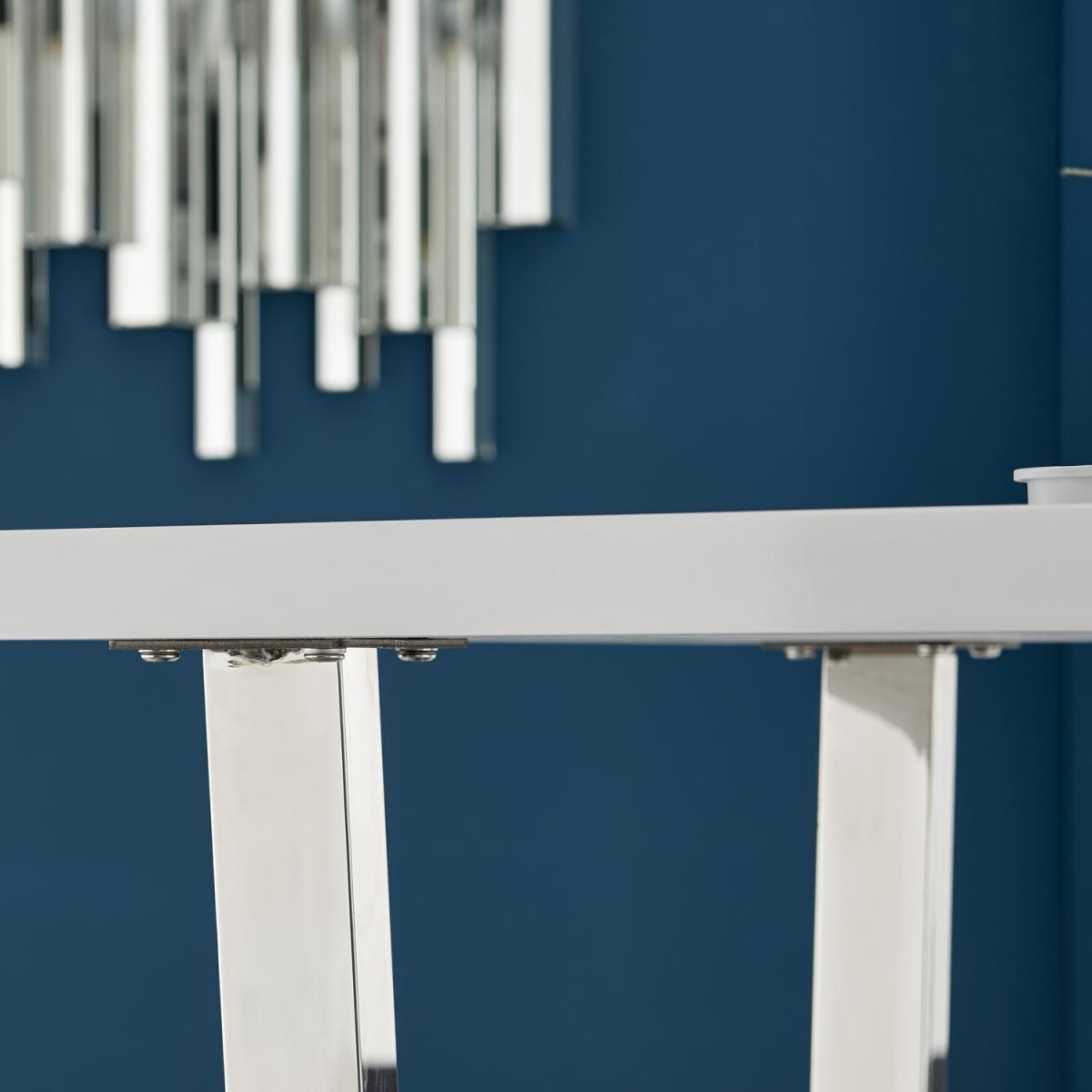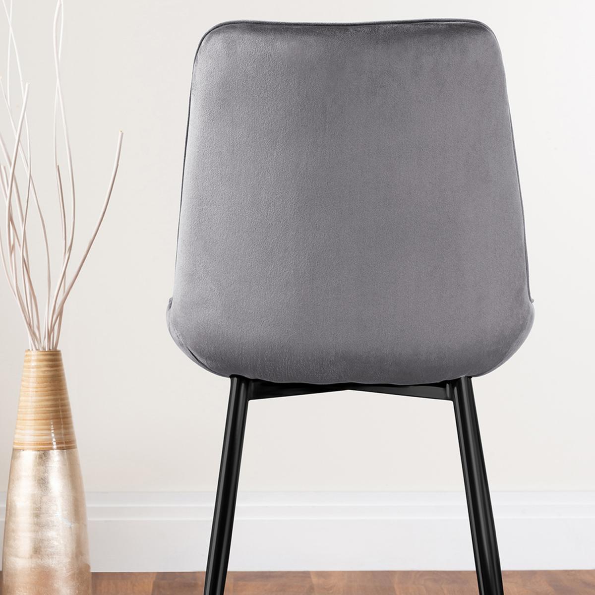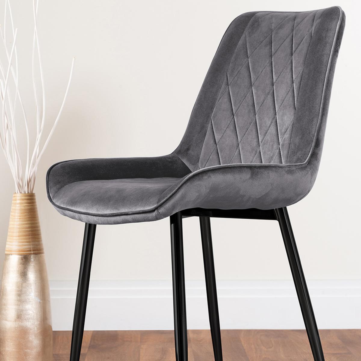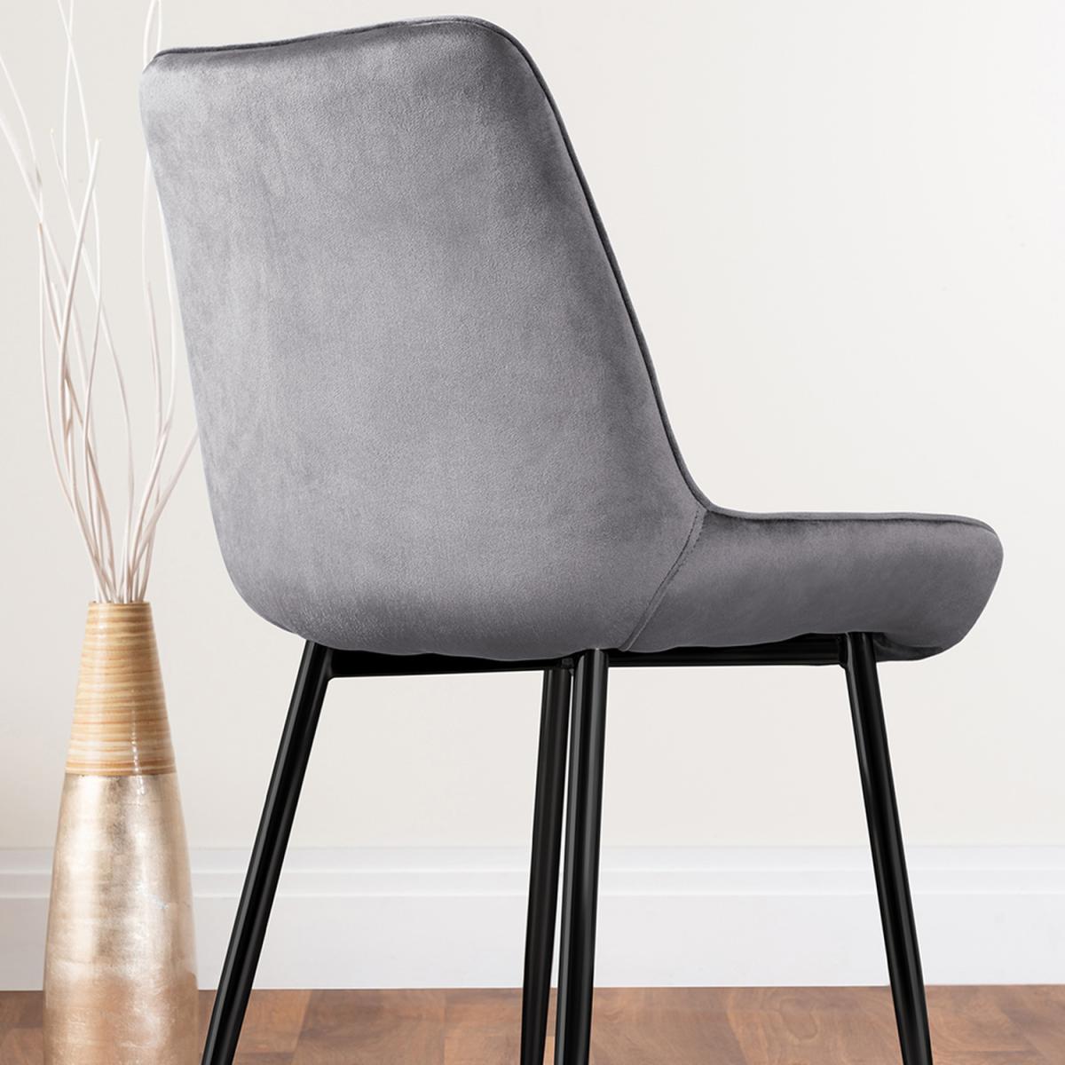 The Kylo collection features a large rectangular tabletop which has plenty of space for laying out an impressive spread for friends and family. This 120cm 4 seat version is ideal if you love hosting guests for dinner. Our favourite part of the Kylo dining table is the u-shaped metal legs which are beautifully finished here in a silver chrome finish for an ultra-modern look. The white high gloss table top is not only beautiful but also practical and easy to clean thanks to its smooth surface which wipes clean. Modernise your dining area with our luxurious velvet upholstered Pesaro Dining Chairs. With a nod to the Mid-century modern design era, the Pesaro features gorgeous textured diamond stitching with an ergonomically designed curved seat pad blending seamlessly to the supporting medium-high backrest. Sat atop elegant slightly tapered legs in black, chrome or gold effect. The Pesaro is a perfect match for any dining table or used as a luxe vanity seat in the bedroom, as an occasional chair for the living area or to add a bit of luxury to your home office. PLEASE NOTE - two of the Pesaro chairs will not be able to fully tuck in between the table legs if placed side-by-side (on the long end of the table)