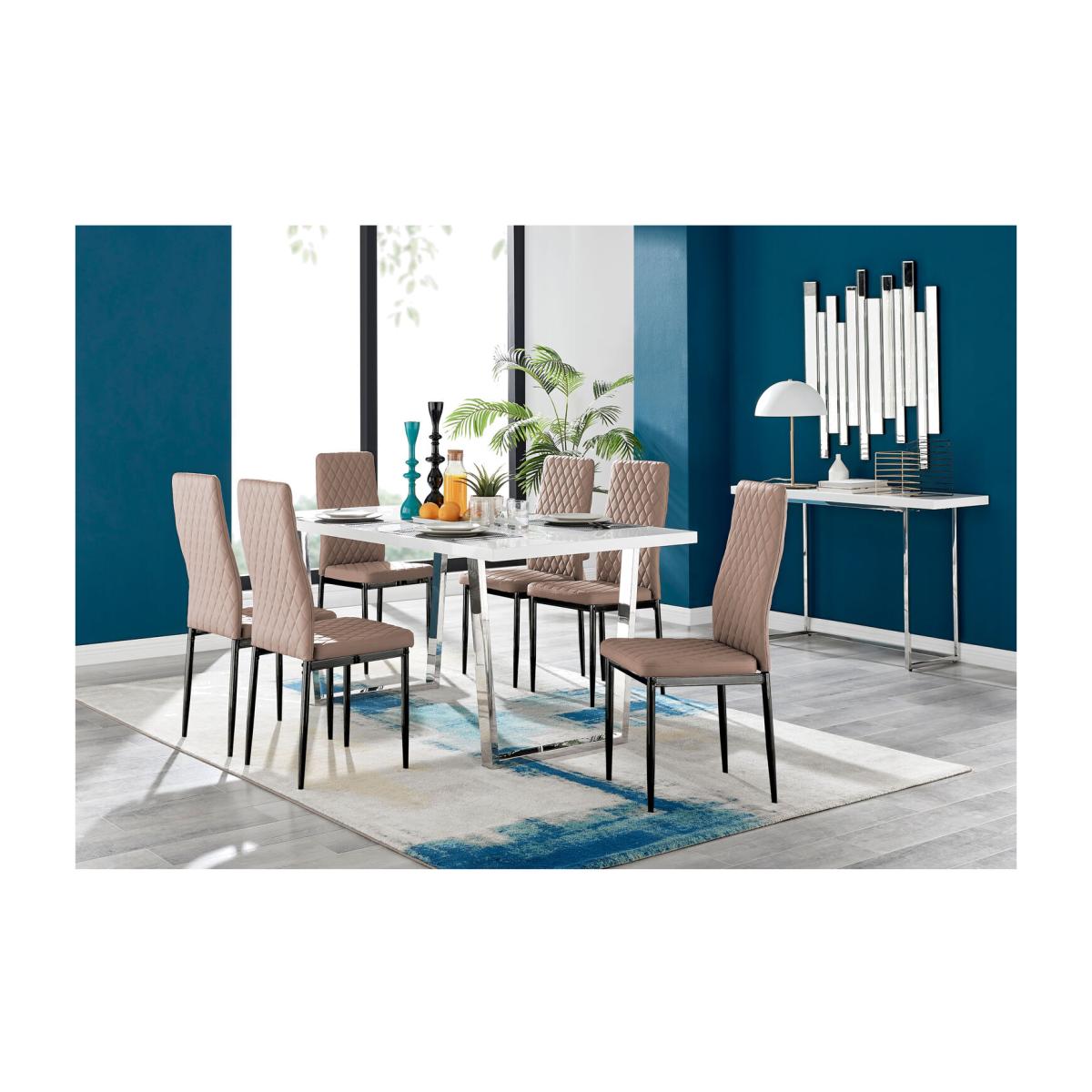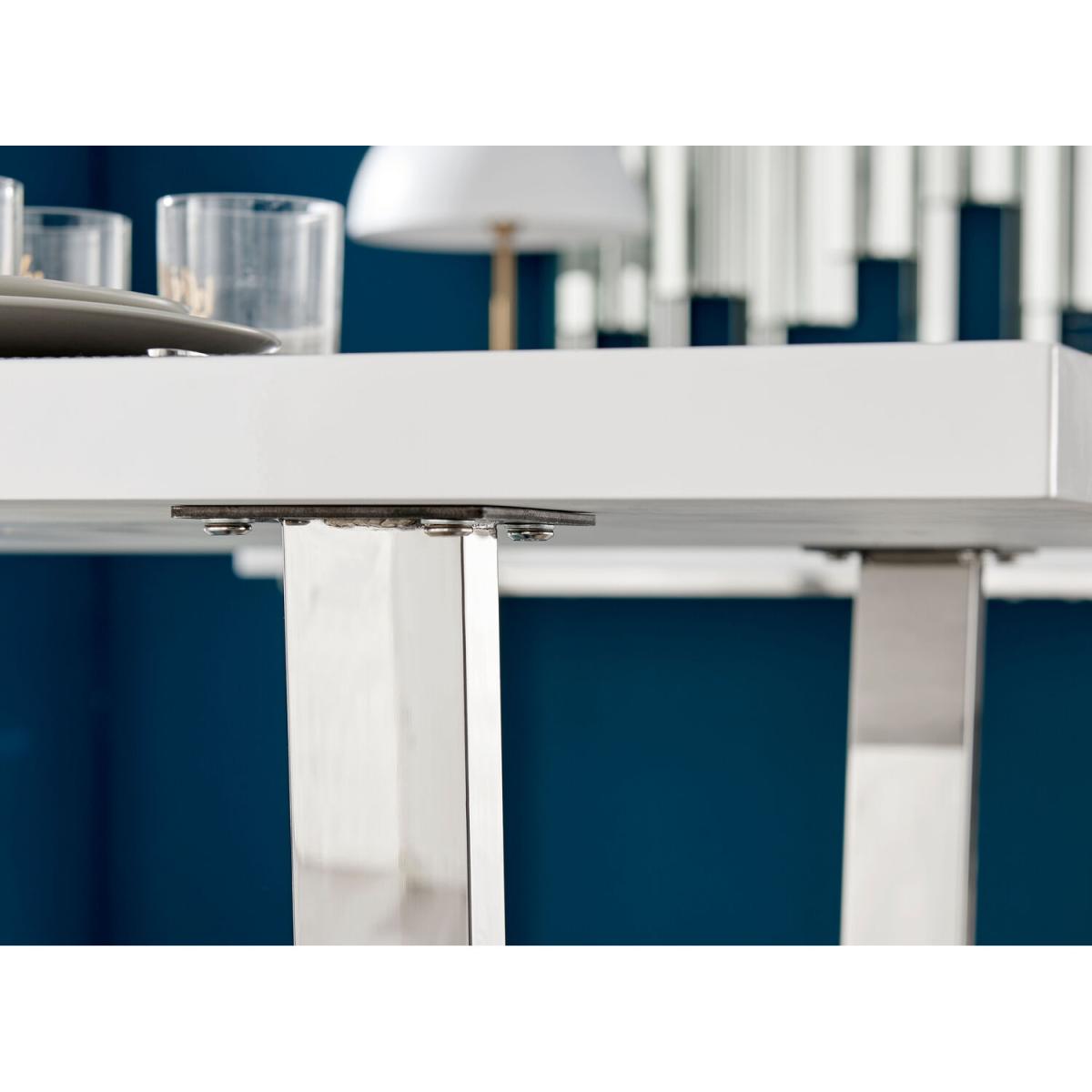 The Kylo collection features a large rectangular table top which has plenty of space for laying our an impressive spread for friends and family. This 160cm 6 seat version is ideal if you love hosting guests for dinner. Our favourite part of the Kylo dining table is the u-shaped metal legs which are beautifully finished here in a silver chrome finish for an ultra modern look. The white high gloss table top is not only beautiful but also practical and easy to clean thanks to its smooth surface which wipes clean.