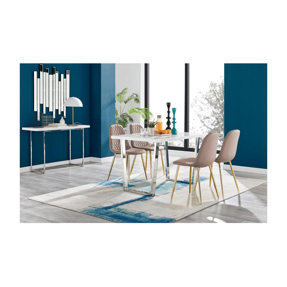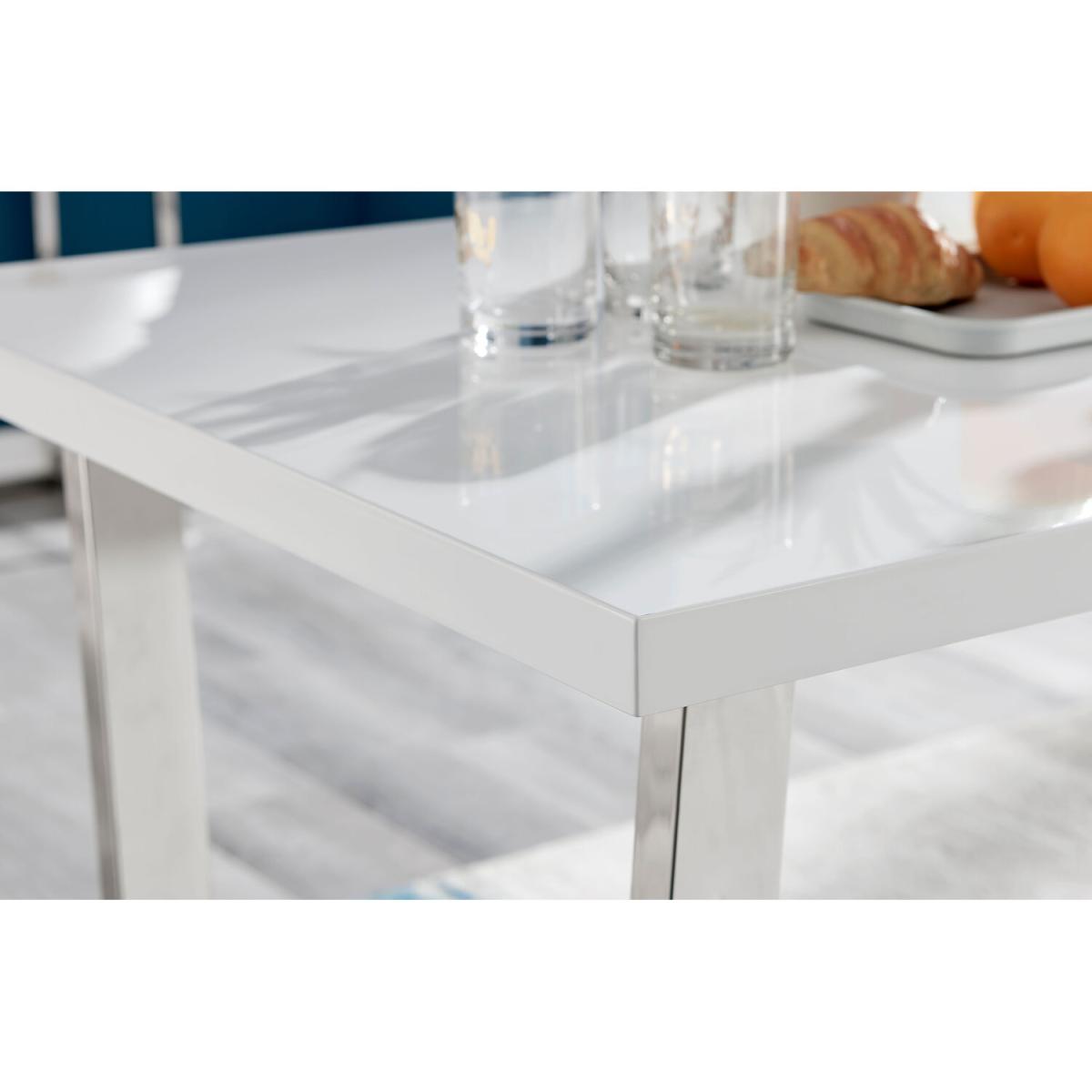 The Kylo collection features a large rectangular table top which has plenty of space for laying our an impressive spread for friends and family. This 120cm 4 seat version is ideal if you love hosting guests for dinner. Our favourite part of the Kylo dining table is the u-shaped metal legs which are beautifully finished here in a silver chrome finish for an ultra modern look. The white high gloss table top is not only beautiful but also practical and easy to clean thanks to its smooth surface which wipes clean.