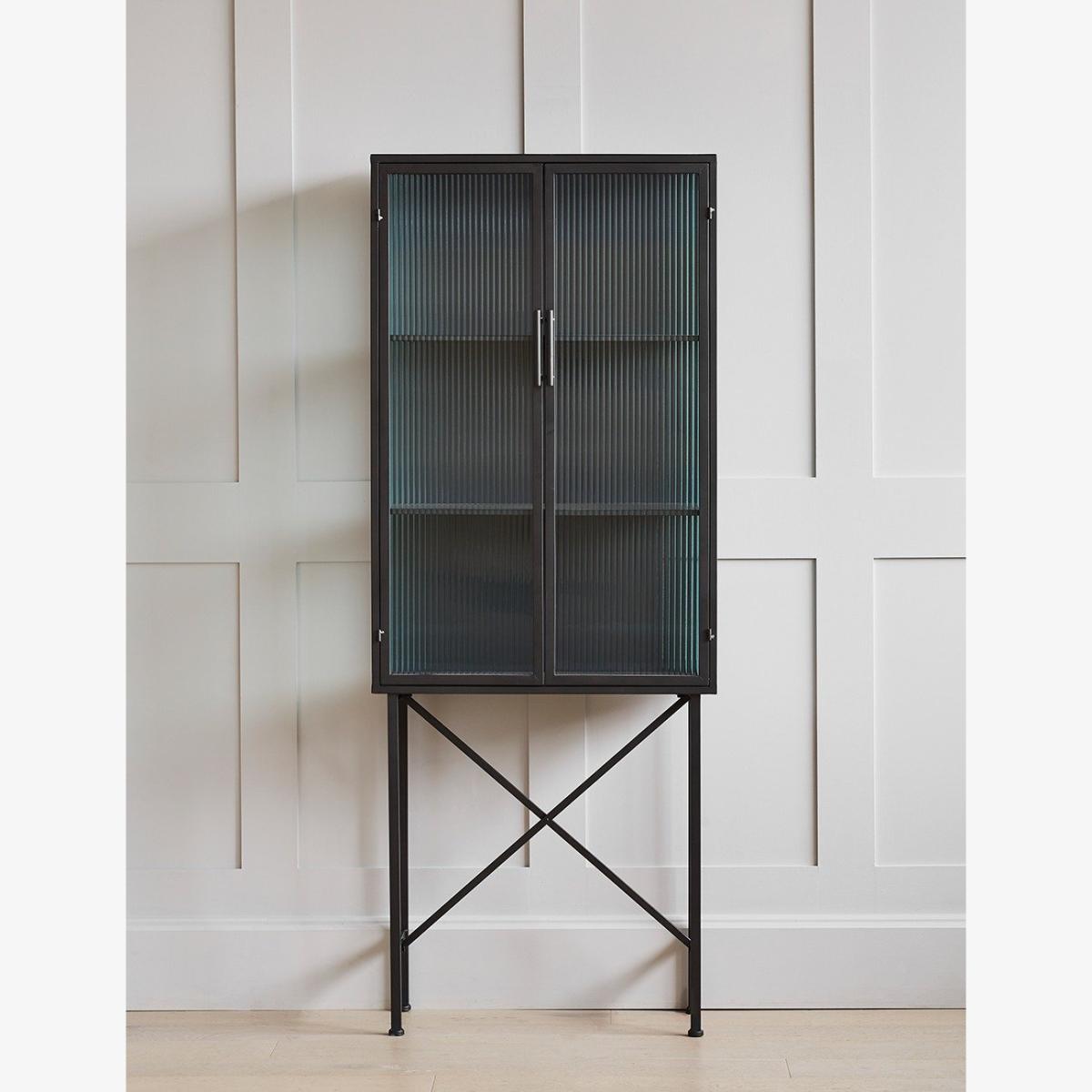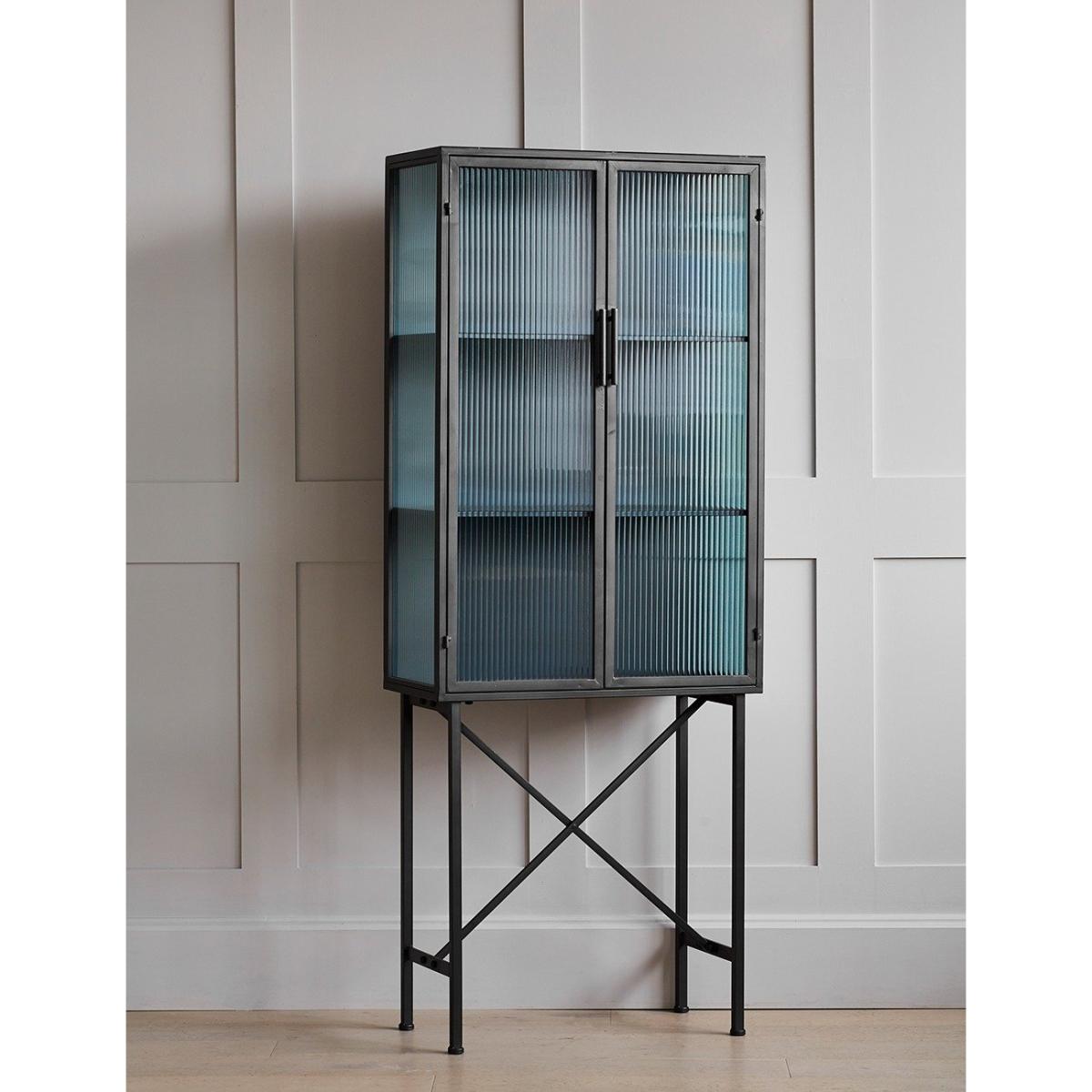 Our Kyoto glass and metal cabinet combines a powder-coated metal frame with ribbed tempered glass windows for a stylish, elegant aesthetic. The cabinet can be used anywhere in the home - we love it in the dining room as a place to store crockery or as a drinks cabinet. A matching sideboard and set of two coffee tables are also available.