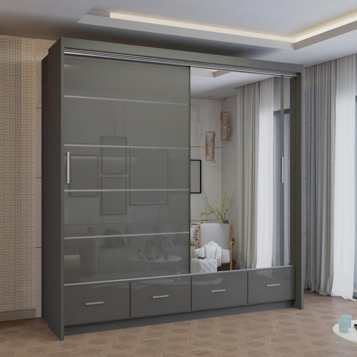 The Kyoto High Gloss Sliding Wardrobe brings timeless elegance and modern design to your room. Finished in high gloss for a smooth and reflective surface, it blends classic and modern styles for a luxury look. A long bright LED light adds style and functionality while lighting up the spacious interior. The sleek sliding doors include one mirrored panel, enhancing both style and the sense of space. Designed with drawers, shelves, and hanging rails, this wardrobe offers smart storage with clean lines and a premium finish. Available in three popular colors and three sizes, the Kyoto wardrobe fits perfectly in any bedroom or dressing area. Available Colors White Black Grey Available Sizes and Specifications 150cm Wardrobe Width 150 cm Height 220 cm Depth 66 cm Includes Two sliding doors one with mirror Two drawers with storage Four shelves with storage One hanging rail 203cm Wardrobe Width 203 cm Height 220 cm Depth 66 cm Includes Two sliding doors one with mirror Four drawers with storage Eight shelves with storage One hanging rail 253cm Wardrobe Width 253 cm Height 220 cm Depth 66 cm Includes Three sliding doors one with mirror Four drawers with storage Four shelves with storage Three hanging rails