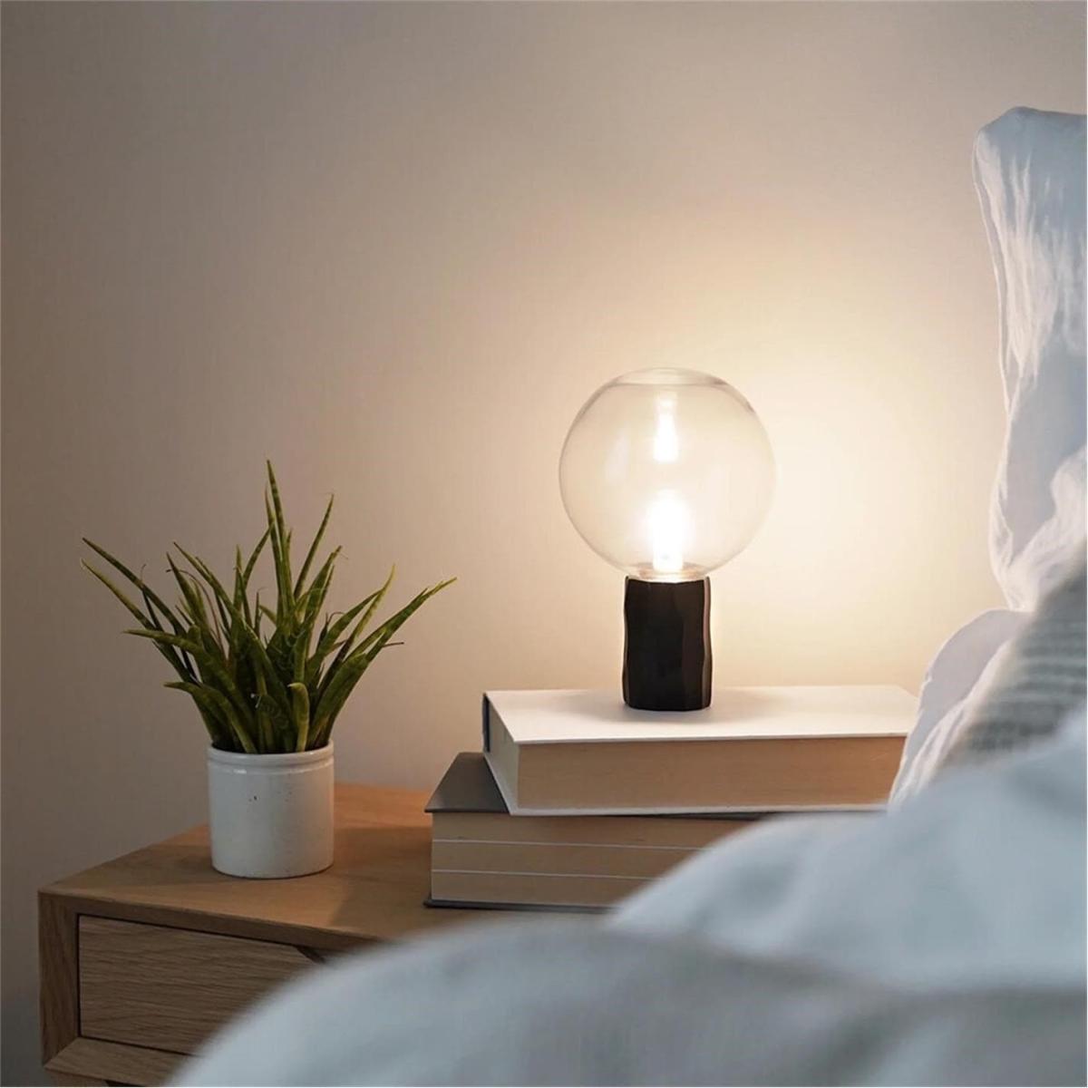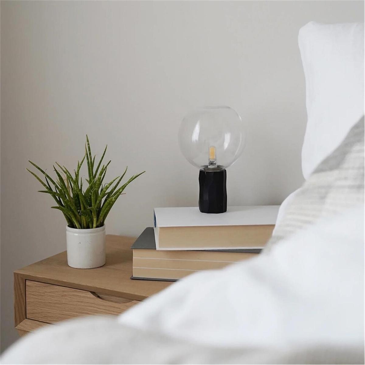 I love this little lamp for its minimalist yet playful design. The clear glass orb diffuses light beautifully, making it ideal for adding ambient illumination on bedside tables or sideboards. Its sculptural shape works well in modern, contemporary, or even eclectic interiors, especially when paired with textured materials or contrasting colours. Practical styling tips include mixing it with other lamps of varying heights to create visual interest or using it as a statement piece in a clutter-free mantel or shelf arrangement. Its versatility makes it a great accessory that can elevate both cosy corners and more polished rooms.