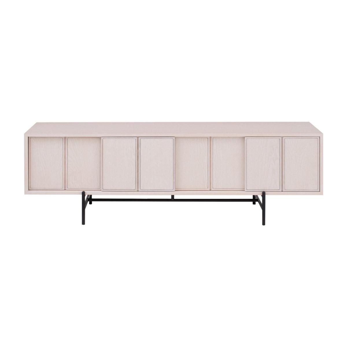 The L.Ercolani Canvas Media Unit, Ash is part of the sublime Canvas Collection designed by Norm Architects and released in 2020. This collection is the perfect example of the common appreciation for detail between both Norm Architects and Lucian Ercolani, combining warm minimalism with purposeful craftsmanship. The solid ash wood cabinet is beautifully finished with sliding doors that move effortlessly, giving you the option to have your gadgets on display or all tucked away neatly. The doors are also offered in their natural wood or in a choice of soft fabrics. Complete with simple black steel legs, creating a slight floating essence, adding an ultra-modern touch.