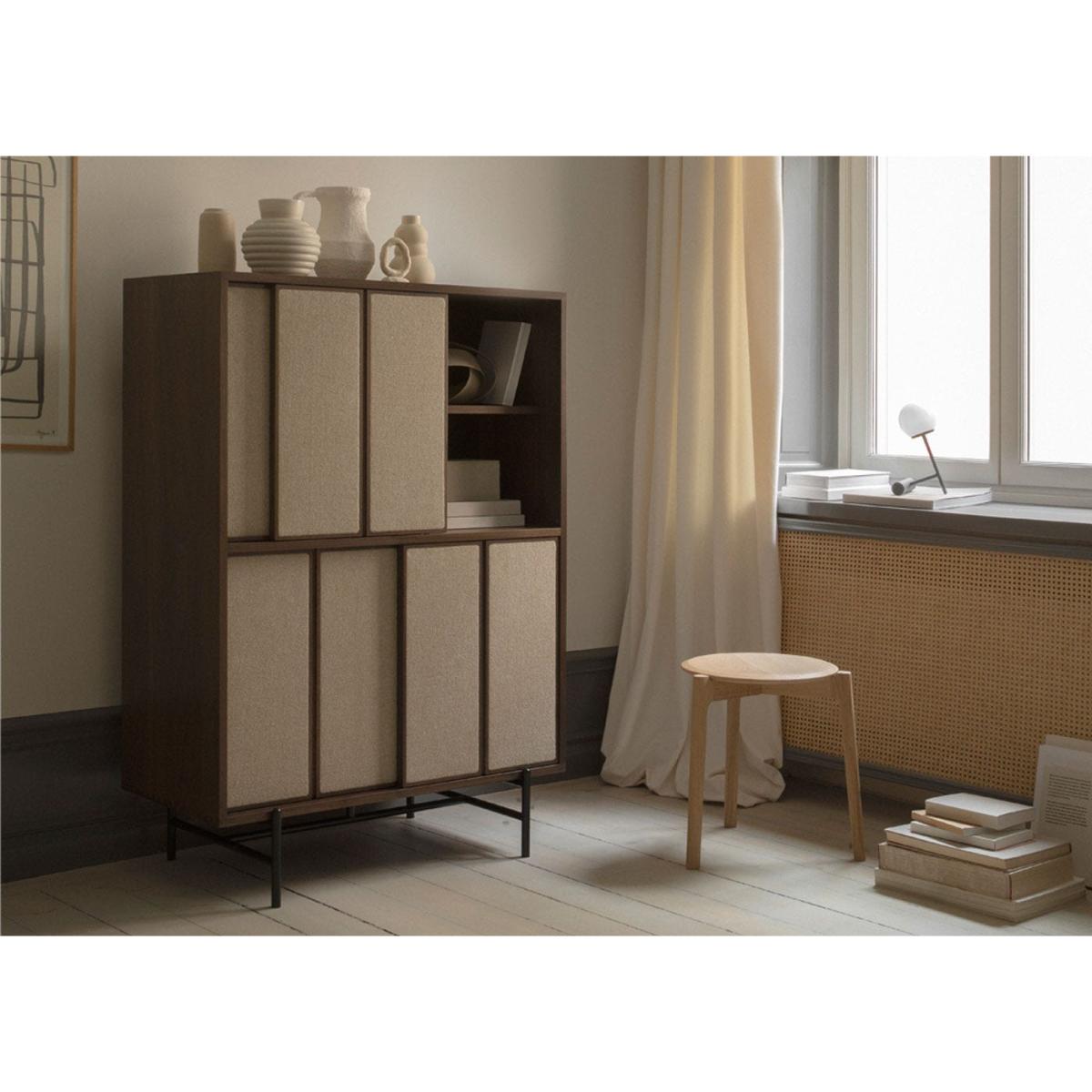 Driven by an uncompromising devotion to natural materiality and form, the Canvas Collection echoes Norm Architect’s seminal vision and distinctive design language. Released in 2020, the Canvas Tall Cabinet is a discrete, sophisticated solution for minimizing household clutter. The star feature of the Canvas Tall Cabinet is its series of sliding doors, designed to appear as separate elements yet bound together by a hidden handle, seamlessly tucked into the wooden groove. For a softer look, users can opt to add fabric panels to the outside of the doors, choosing between a soothing selection of muted, cohesive fabrics. Offered in both Ash and Walnut timber, the Canvas Collection allows users to personalize their cabinet to their individual needs and preferences.