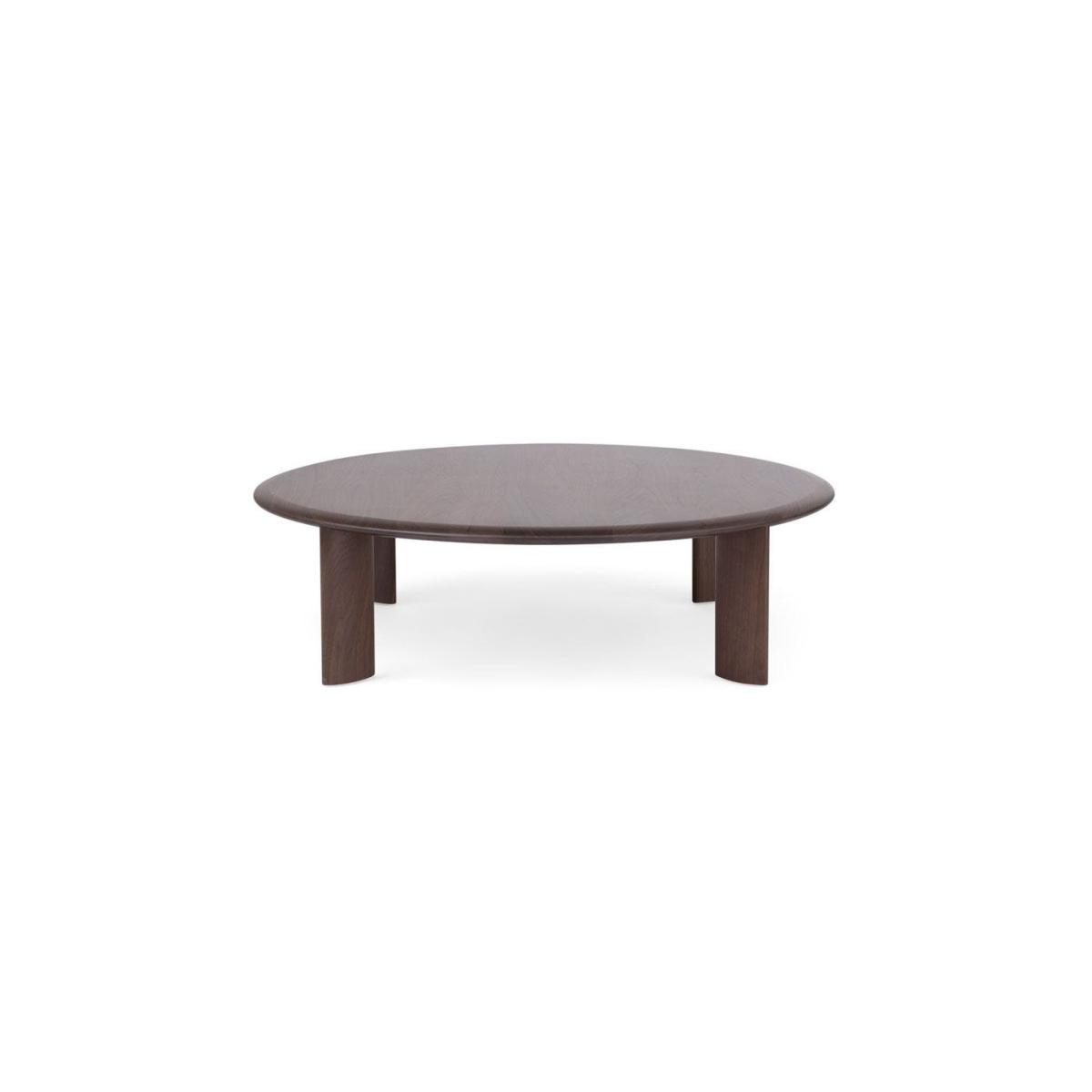 Designed in 2020 by Lars Beller Fejtland, the IO Large Coffee Table is a mid-sized coffee table from the IO Collection — a standout, well-constructed centerpiece with generous curves and a soothing matte finish that begs to be touched. Constructed of solid wood, the rounded, plank-like legs of the IO Large Coffee Table are a seamless extension of the table’s sinuous profile, creating a continuous, uninterrupted silhouette from top to bottom. The IO Coffee Table boasts a moulded, circular table-top with uniform, tactile edges and a homogeneous, unblemished surface — perfect for displaying books, magazines and various design objects. Available in a Black Ash and rich Walnut timber, the elemental warmth of natural wood is a soothing complement to the IO Large Coffee Table’s refined profile.