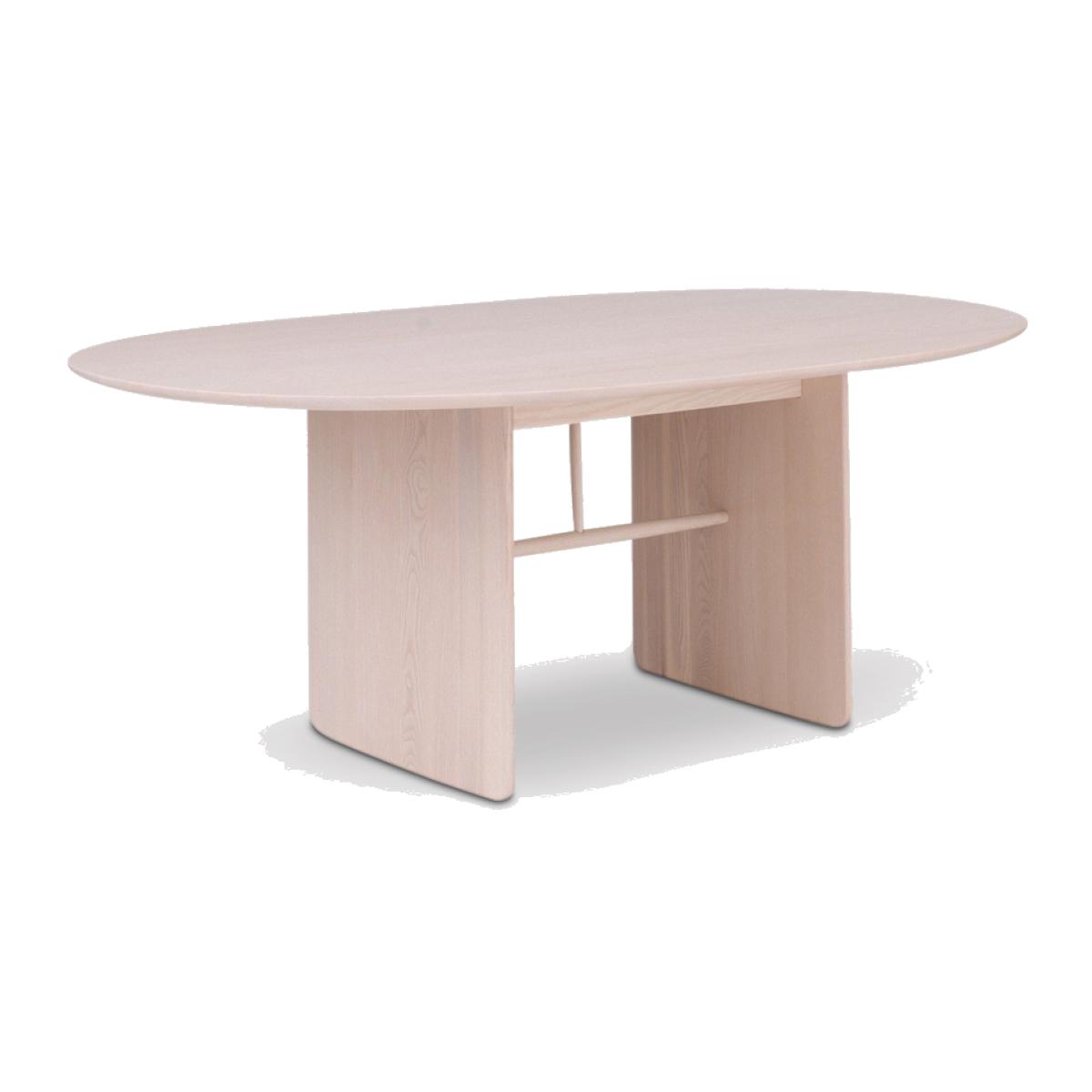 Adaptable and timeless, the L.Ercolani Pennon Small Table was designed by Norm Architects in 2019 inspired by the structure of old biplane wings and as an expression of their trademark Nordic minimalism.  Offered in both solid ash wood and walnut timber, it seamlessly suits a wide range of interiors and settings from dining to workspaces. Distinctively crafted with graceful curves, flawless moulded edges and handcrafted legs which are situated for optimal leg room and comfort, this table has a warm, inviting touch youll never forget.