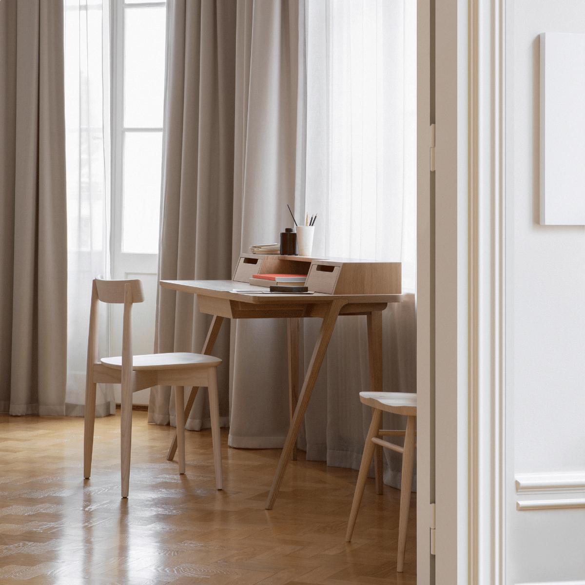 I love the Treviso desk for its clean, understated design and versatile neutral tone, making it a perfect addition to both contemporary and Scandi-inspired interiors. Its compact size and clever storage drawers help keep your workspace organised without cluttering the room. It works particularly well in home offices or smaller spaces where a minimalist aesthetic is desired. For styling tips, consider pairing it with a sleek desk chair, adding a statement desk lamp, and keeping accessories intentional-think a simple tray or a few well-chosen office essentials. Its light wood finish also allows for easy layering with textured textiles or colourful accents to add personality without overpowering the room.