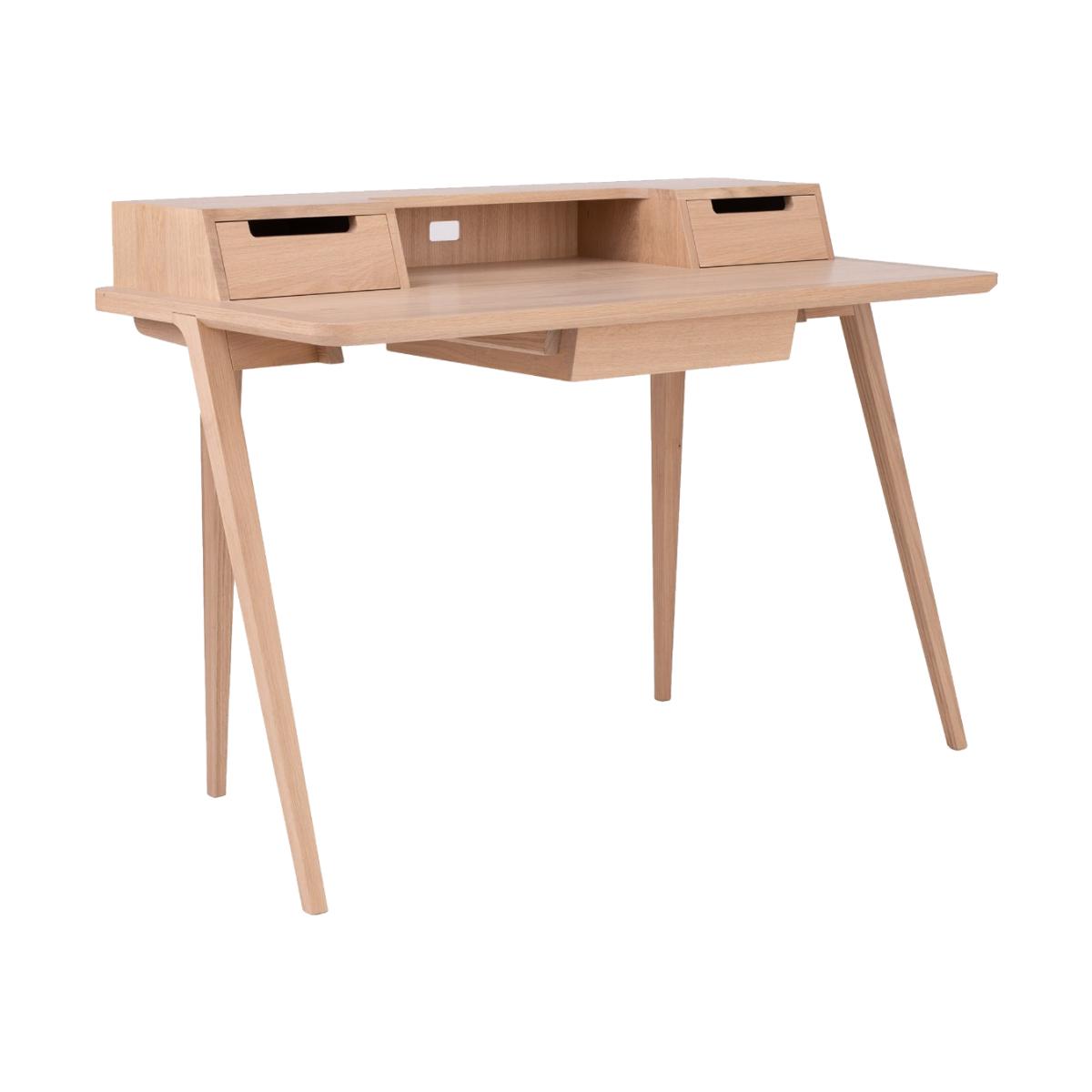 Design. Designed by Matthew Hilton and launched in 2009, the striking and functional L. Ercolani Treviso Desk boasts a rich, substantial character of durability, sophistication and timelessness. Displaying an angular, geometric form, this desk has a unique oblique profile with tilted wooden legs and hardly seen built-in drawers and a hidden compartment underneath for a minimalistic, seamless finish. With plenty of room for laptops, books, stationery and any decorative objects you wish, this desk allows you to get on with your work comfortably with everything you need right by your side. Available ina pale oak and rich walnut.