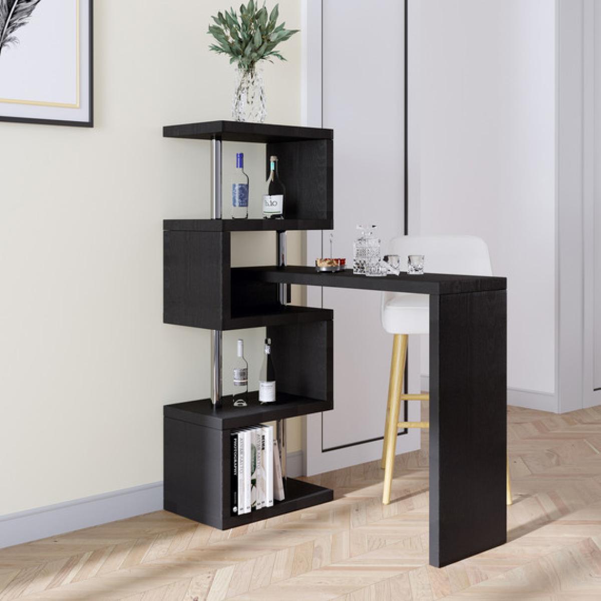 The L shape corner table with storage is a great practical piece that maximises space, especially in smaller or more compact interiors. I love how its black finish lends a sleek, modern look that can work well in both contemporary and industrial-inspired settings. It’s particularly versatile for corner spaces, making it ideal for home bars, breakfast nooks, or even as a compact workstation. For styling tips, consider pairing it with minimalist bar stools or stools with metal accents to enhance the modern vibe, and accessorise with glassware or decorative plants on the shelves to add personality. This piece is perfect for those looking for a functional yet stylish addition that doesn’t dominate the room but rather complements existing decor seamlessly.