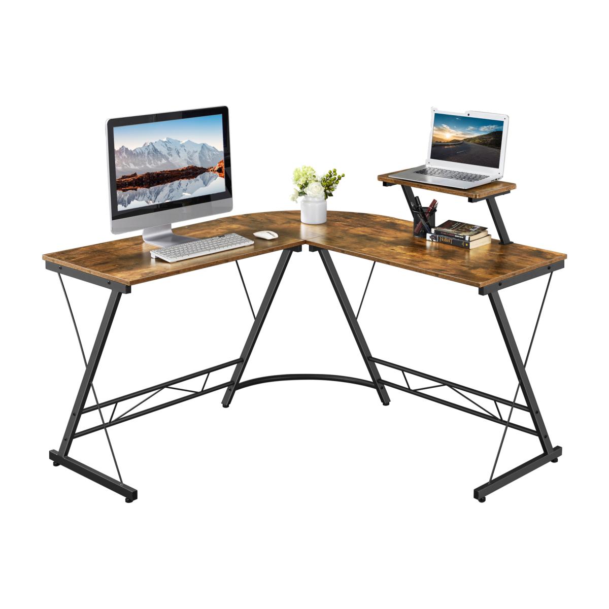 L-Shaped Computer Corner Desk with Monitor Stand - Rustic Brown