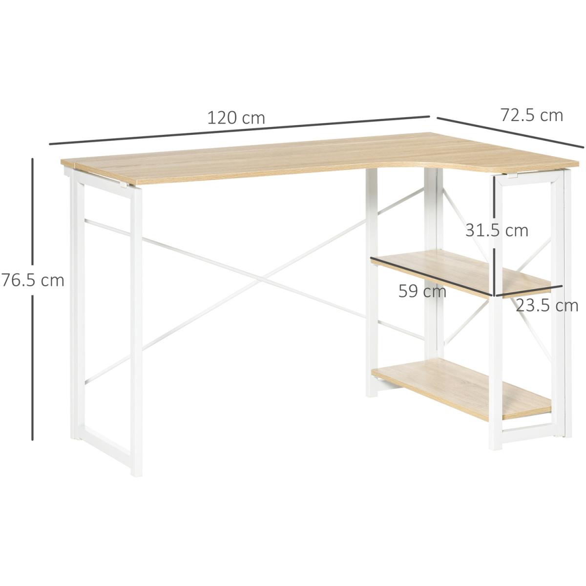 L-Shaped Computer Desk with 2 Shelves - Oak
