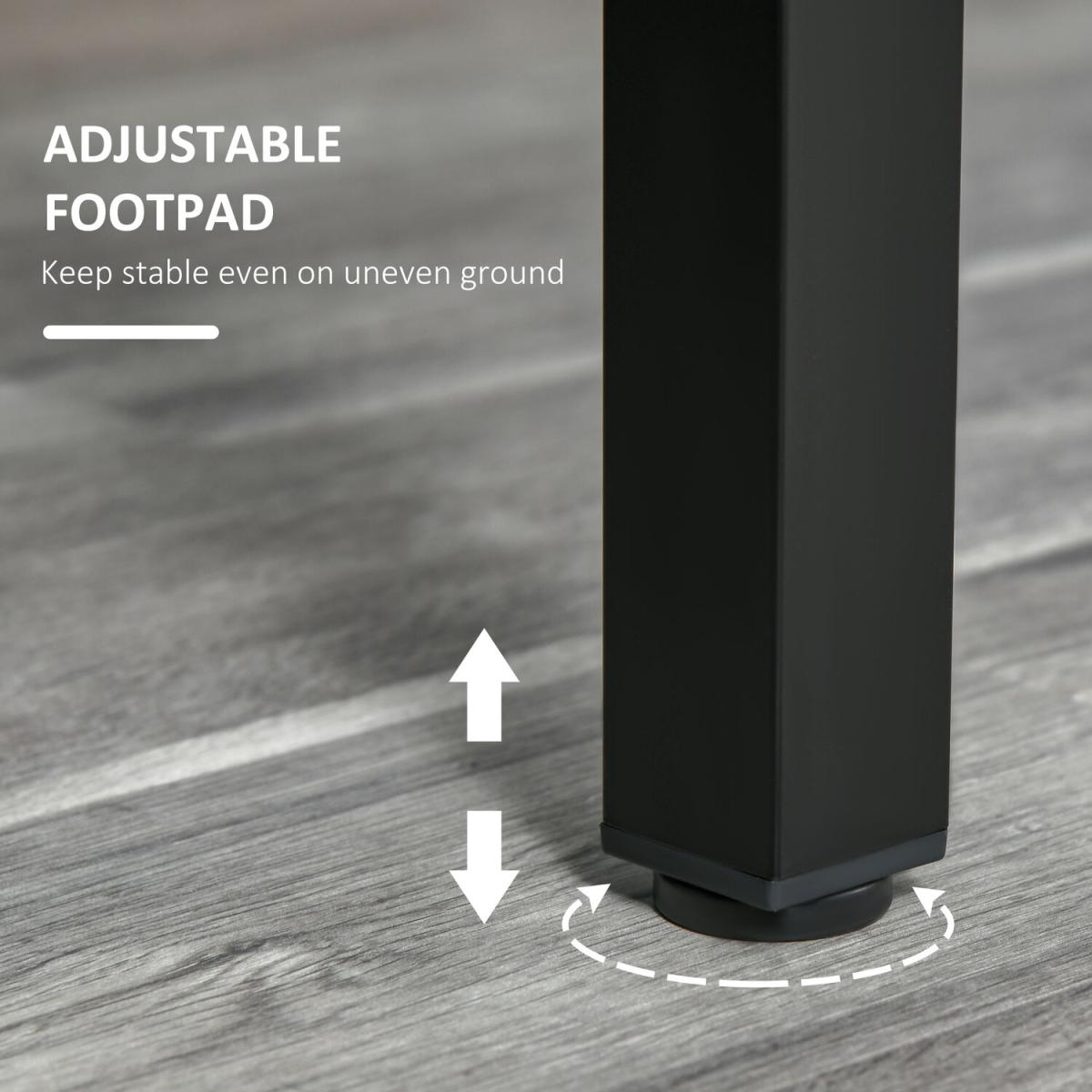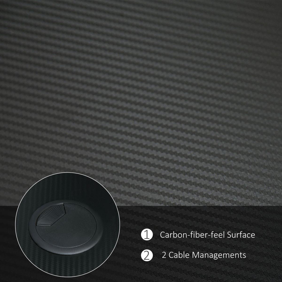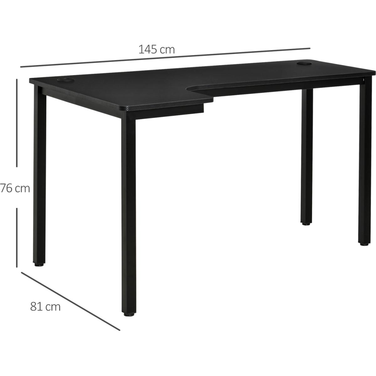 'L' shape design gives more working space than your average table - room for two screens/monitors, keyboard, work/gaming essentials, whilst giving you plenty of freedom to work and write. The frame is made for metal for a solid base, supporting up to 50kg. Durable particle board table top is covered in a textured finish for a standout look. Completed with two cable holes at the back.