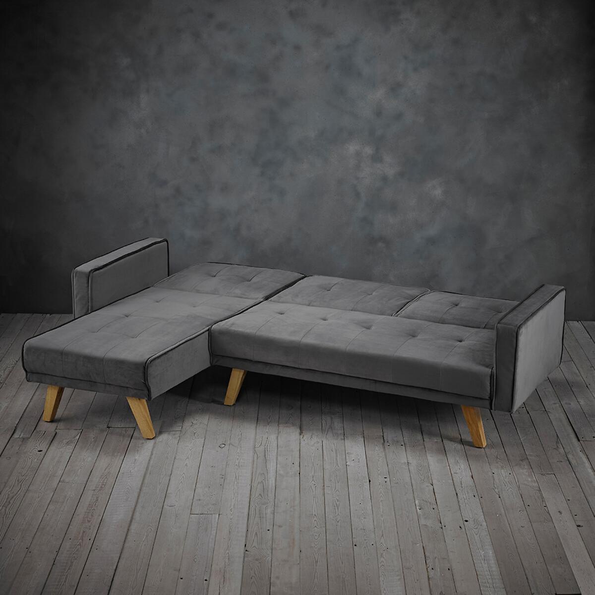 This product will be dispatched by one of our trusted suppliers. You’ll be contacted by their selected courier about your delivery. Please note: this product cannot be be delivered to all Offshore Islands Northern Ireland or Republic of Ireland. Free Swatch Service. We offer a FREE swatch service. Email laredoute@lpdfurniture.co.uk with your name and address, along with the range name, item number (Ref) and colour choice. Your swatches will be delivered within 5 working days (subject to availability). A very smart, chic sofa bed with extended chaise, upholstered in either mid-grey linen fabric or teal or silver velvet with a light oak leg. A fantastic three-seater sofa for you to put your feet up and accommodate guests to boot! Available left and right-handed. Self Assembly Required. Product Dimensions Weight: 50kg, Length: 113cm, Width: 198cm, Height: 86cm. Please remember to measure your available space before ordering Packaged Dimensions Parcel 1: Weight: 35kg, Length: 129cm, Width: 116cm, Height: 22cm Parcel 2: Weight: 25kg, Length: 171cm, Width: 66cm, Height: 22cm