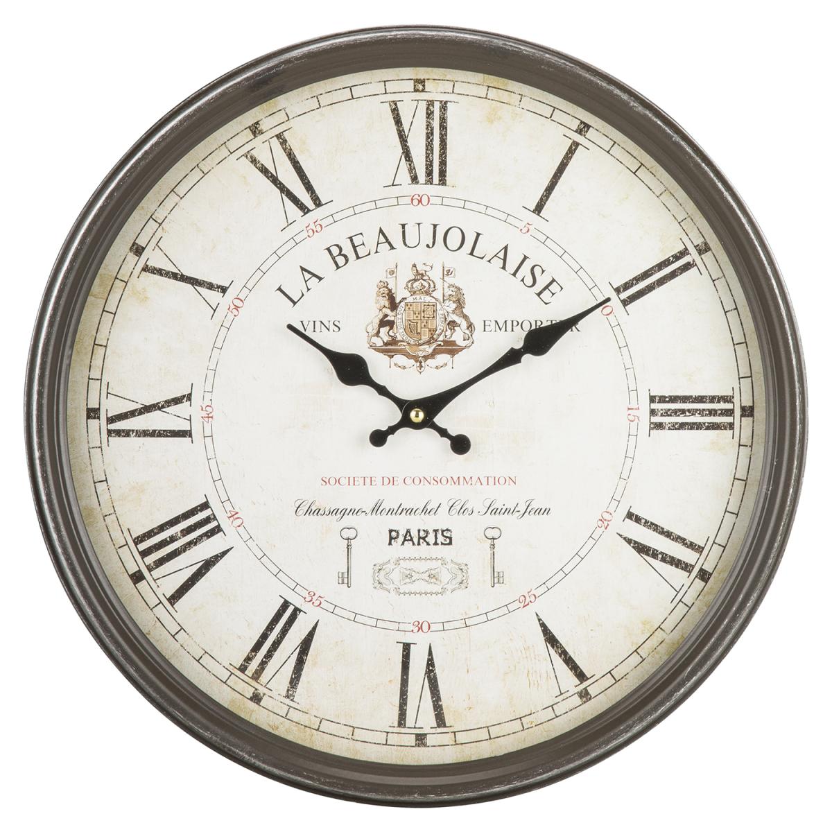 Encompassed by a circular iron frame and detailed with French text, the La Beaujolais Wall Clock emanates vintage chic. Keeping time with classic Roman numerals and two hands, this clock is a decorative and functional wall hanging for any room of your home.