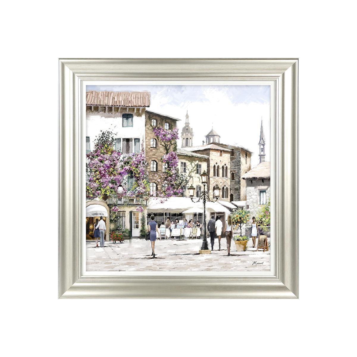 This sophisticated yet charming courtyard café seems like the perfect place to relax. Reproduced from a work of art by renowned painted, Richard Macneil, this delightful print charms with its sense of warmth and vitality, and its atmospheric painterly quality. It’s unglazed and features a hand-applied resin finish that preserves and enhances the gorgeous colouration, giving the piece an immediacy which enhances its inherent warmth. It’s finished with a simple yet stylish metallic-look frame. Pair it with its partner piece, La Bella Vita 1, or with Mediterranean Courtyard, another work by Richard Macneil. Dimensions. Width: 61 cm (24 inches). Height: 61 cm (24 inches).