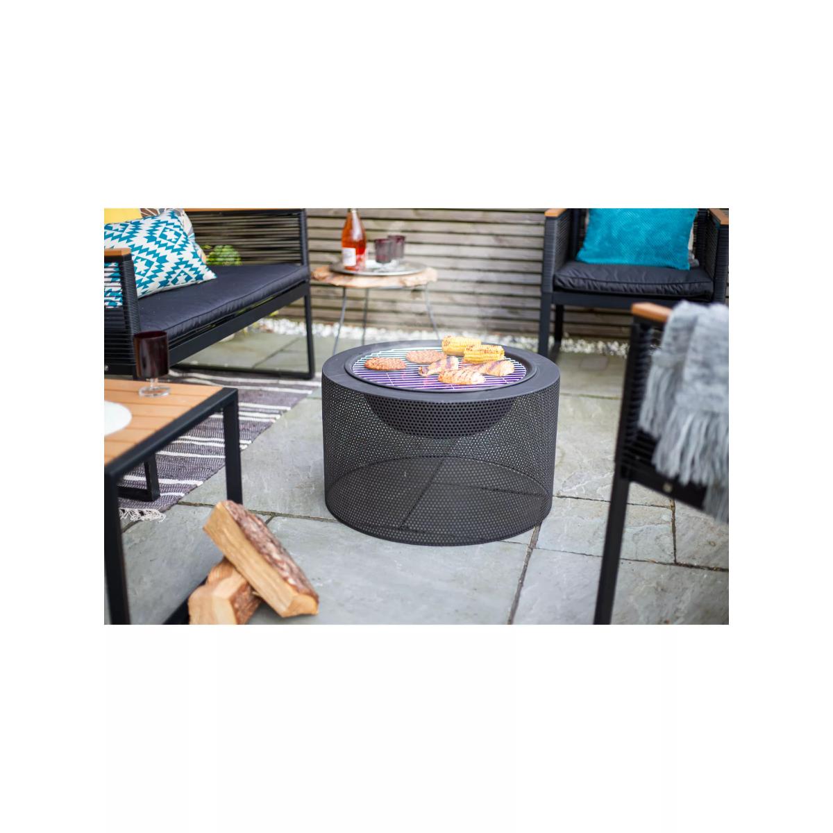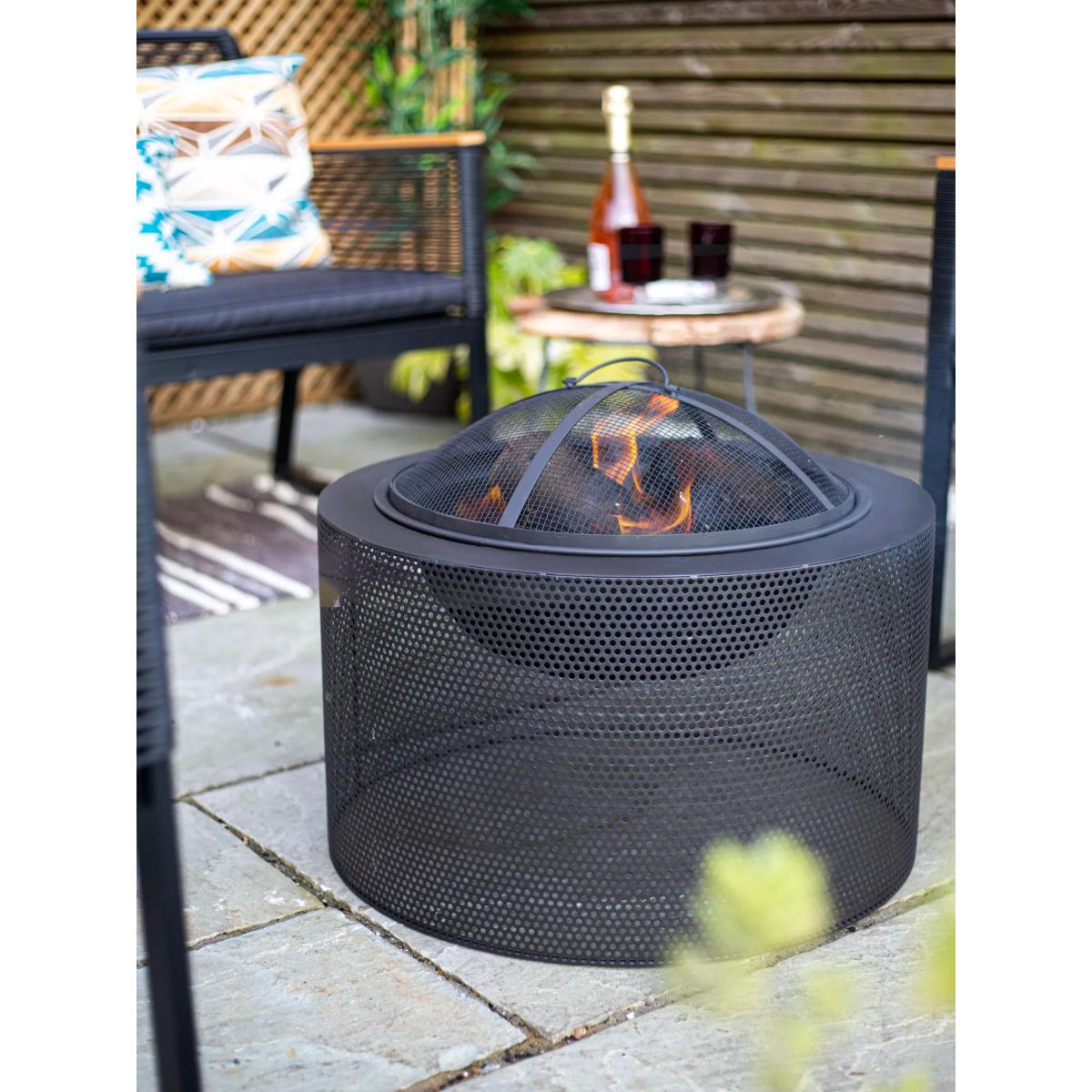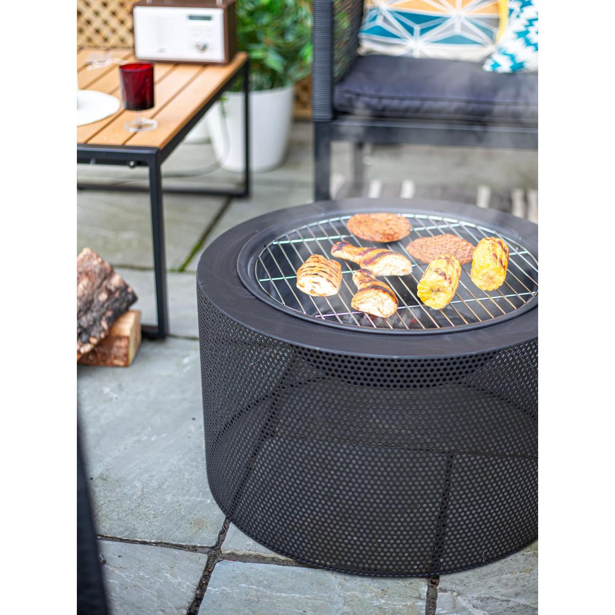 A modern design and focal point for the garden or patio, the Beswick firepit from La Hacienda radiates warmth from its perforated sides. Remove the top grill to use as a firepit or keep it on for barbecueing. The firepit comes with a safety cover in a matching perforated design. Ideal for extending time outside on chillier days and nights, the firepit is made from robust and splash-proof steel. Key features: Modern round design with BBQ grill and tool Made from durable steel 360-degree view of the fire Perforated sides radiate heat Matching protective mesh lid included Comes with log grate, chrome cooking grill, safety tool Sturdy base Easy to assemble Good to know: Do not use on timber decking For outdoor heating only. Use untreated wood and logs Use lumpwood charcoal for cooking Do not burn coal in this firepit Do not overload with fuel. One or two logs is recommended (800g-1.6kg) The recommended amount of fuel must not be exceeded by greater than 50% Want to see it first? You may want to see and get a feel for the product in one of our shops before ordering. We'll be able to tell you where the range you'd like to view is on display.