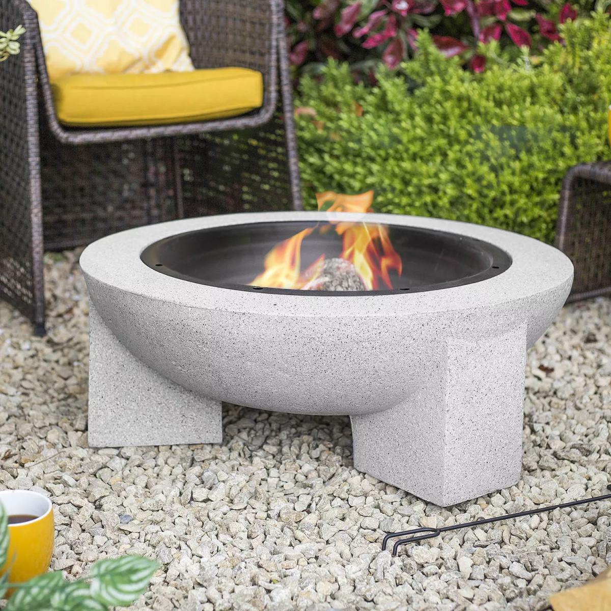 Bring a contemporary look to the garden or patio, while creating a warm and inviting space with the Hawkesbury Magnesia firepit from La Hacienda. Although made from lightweight and durable magnesia, this firepit has a granite-effect finish resembling heavy stone. It includes a protective mesh cover and a matching metal tool to stoke the fire and shift logs. Key features: Lightweight and durable Contemporary granite-effect design Protective mesh cover Matching firepit tool included Good to know: For outdoor heating only. Use untreated wood and logs Do not burn coal or charcoal in this appliance Do not overload with fuel. One or two logs is recommended (800g-1.6kg) The recommended amount of fuel must not be exceeded by greater than 50% Want to see it first? You may want to see and get a feel for the product in one of our shops before ordering. We'll be able to tell you where the range you'd like to view is on display.