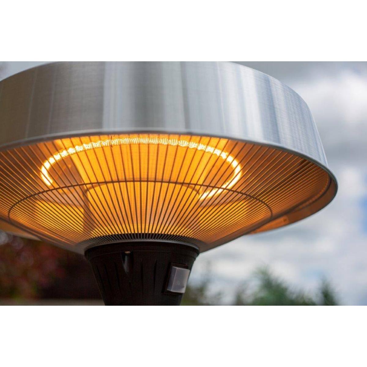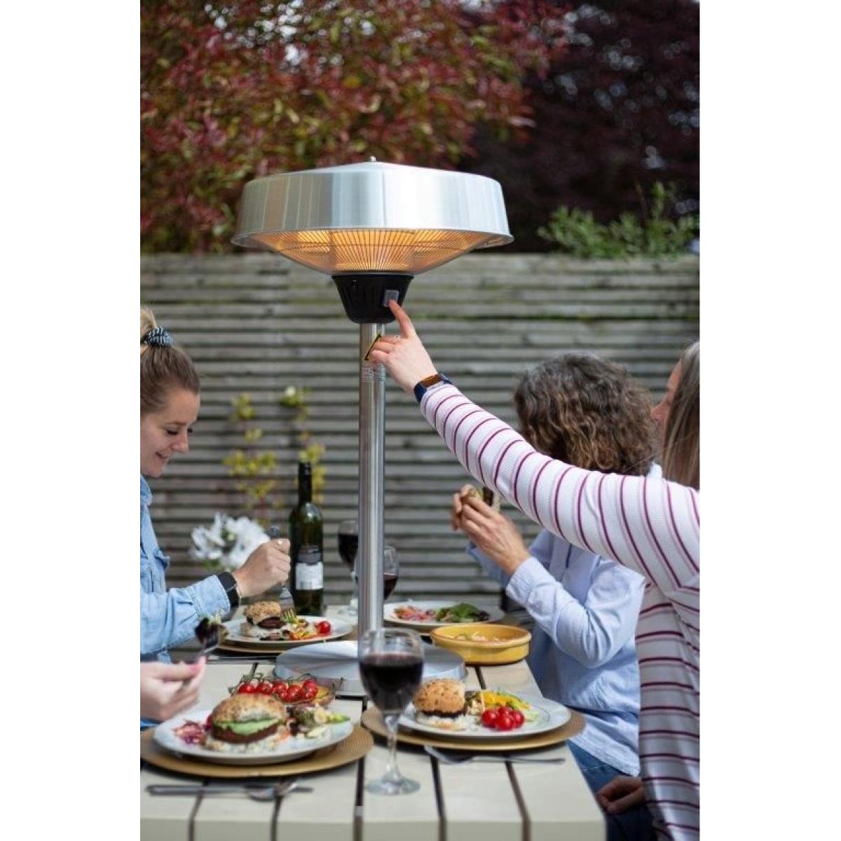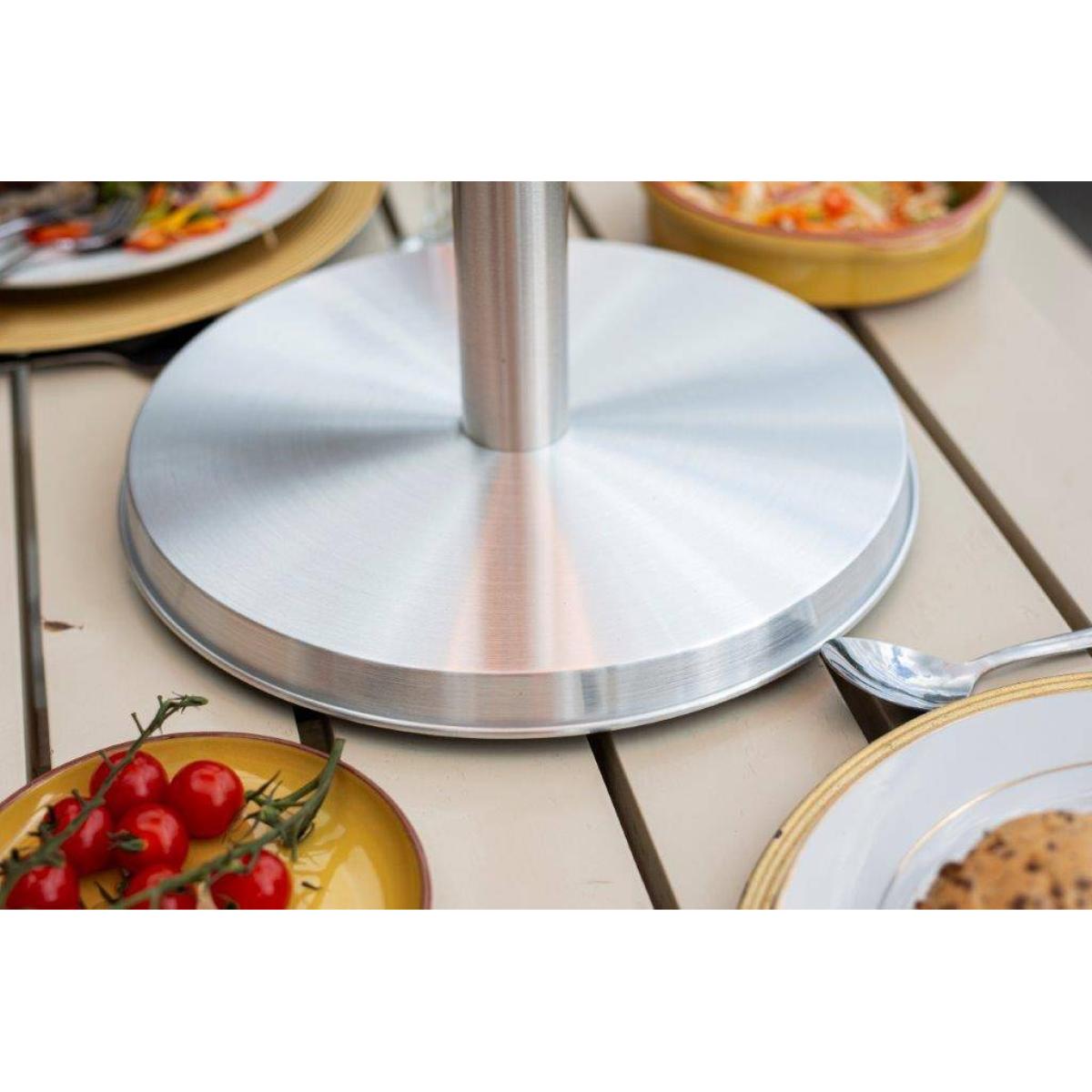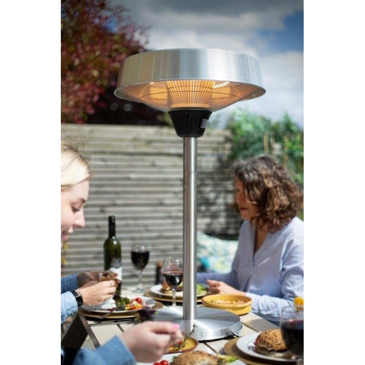 Ideal to accompany an alfresco dining experience, the eco-friendly 2100 watt Silver Series Tabletop Halogen Heater is a stylish and cost efficient way to ensure no-one gets cold. Due to infrared technology, only people benefit from the heater's warmth, not the surrounding air. There is one heat settings and a lifespan of over 5000 hours can be anticipated for the long life lamp. Slim and cylindrical, the heater is made from shining stainless steel and lightweight aluminium. The base is weighted to ensure stability and for complete safety there is an automatic cut out. Powerful 2100w Infrared elements heat the body and not the surrounding air Exceptional long life lamp that provides more than 5000 hours of heat as well as bright light IP44 rated for outdoor use Aluminium and stainless steel construction Weighted base with anti tip safety cut out Soft touch setting Material: Aluminium and stainless steel Colour: Silver Size: H80 x D50cm