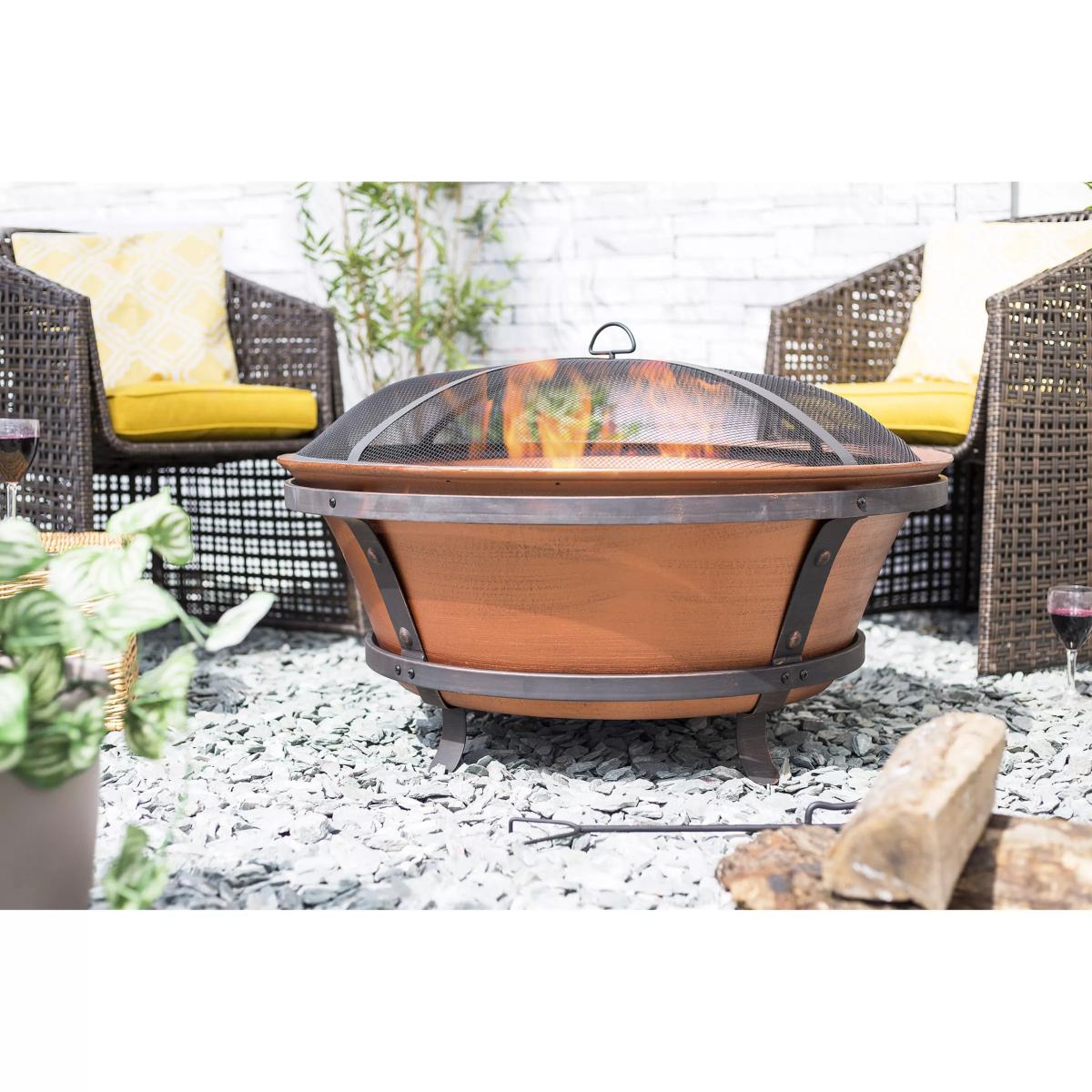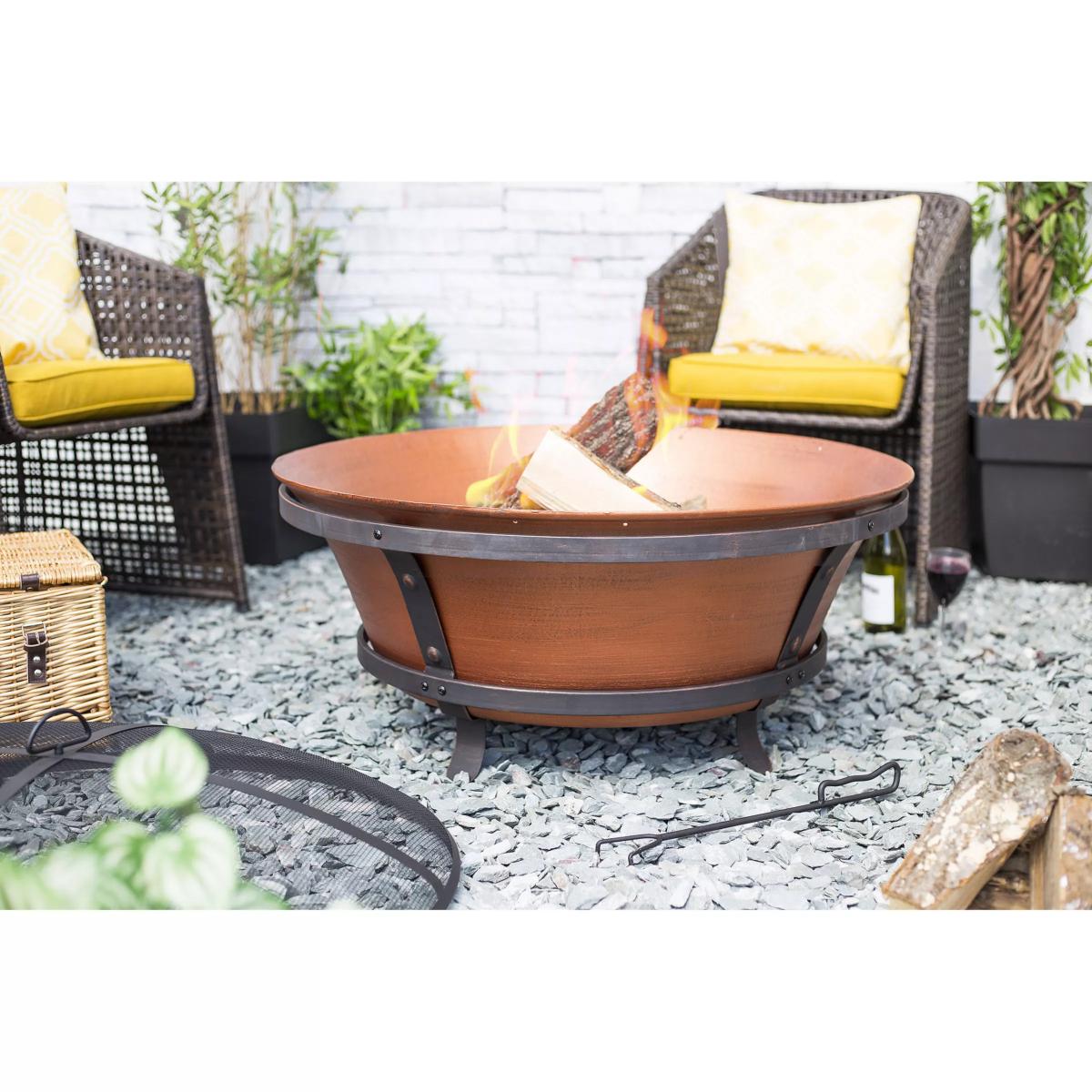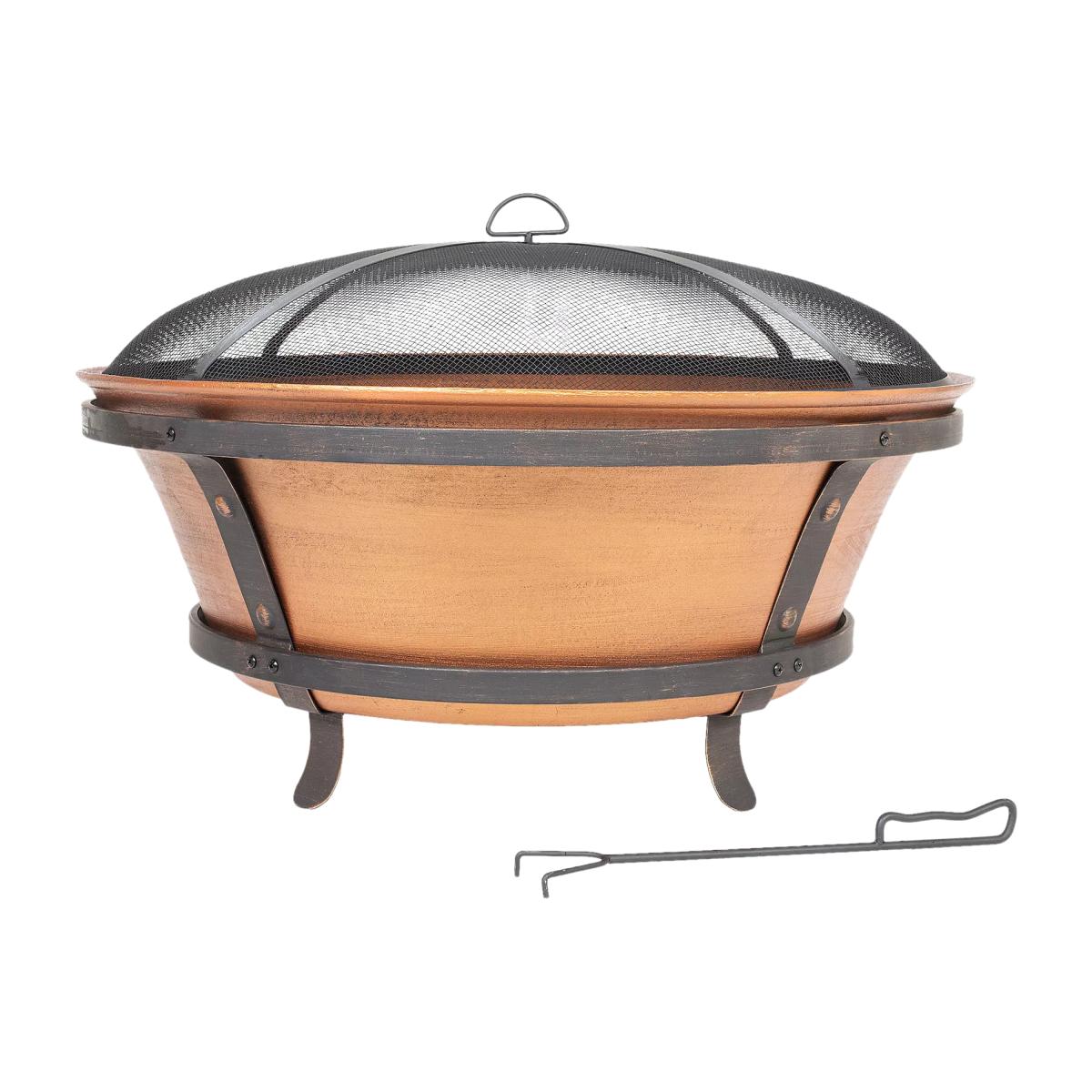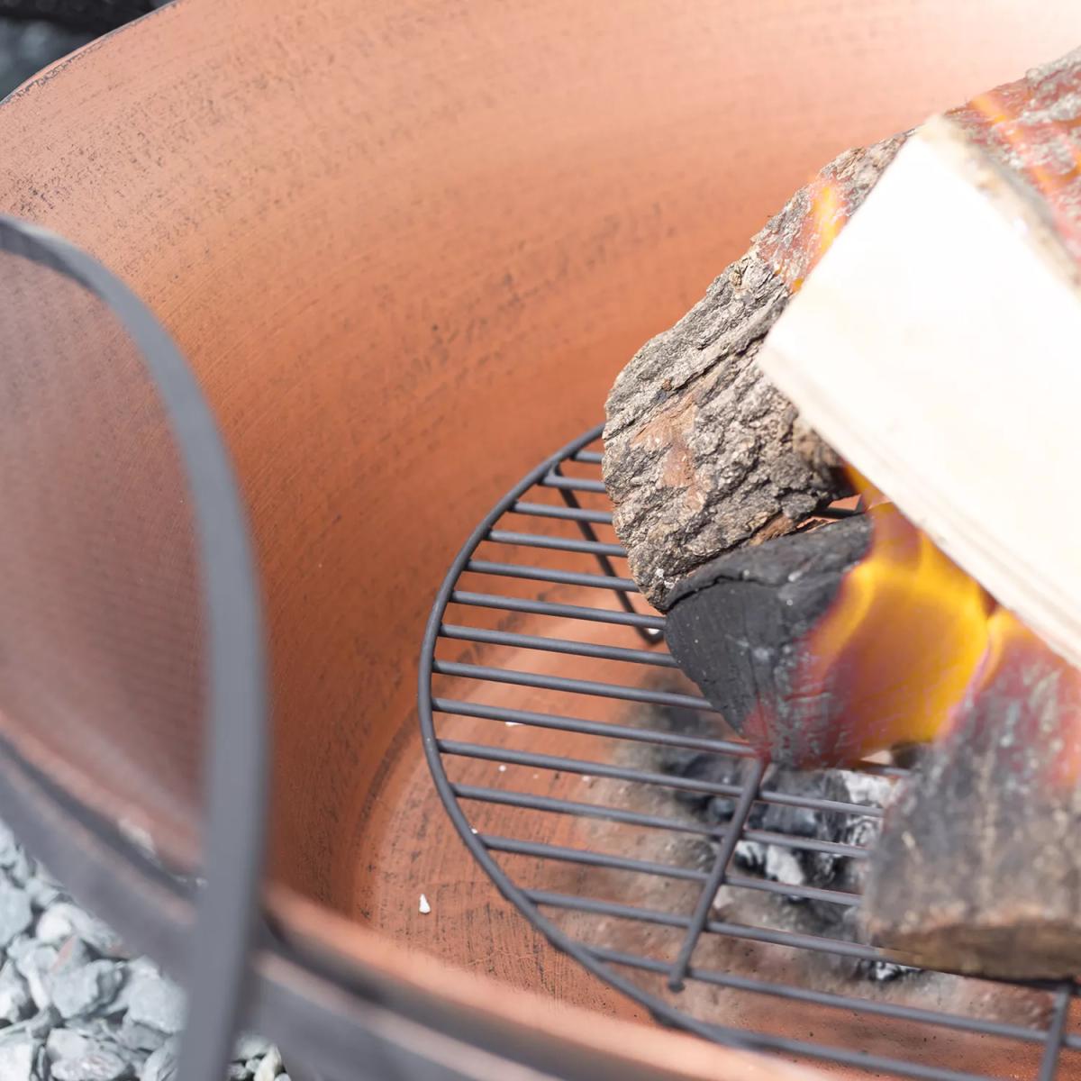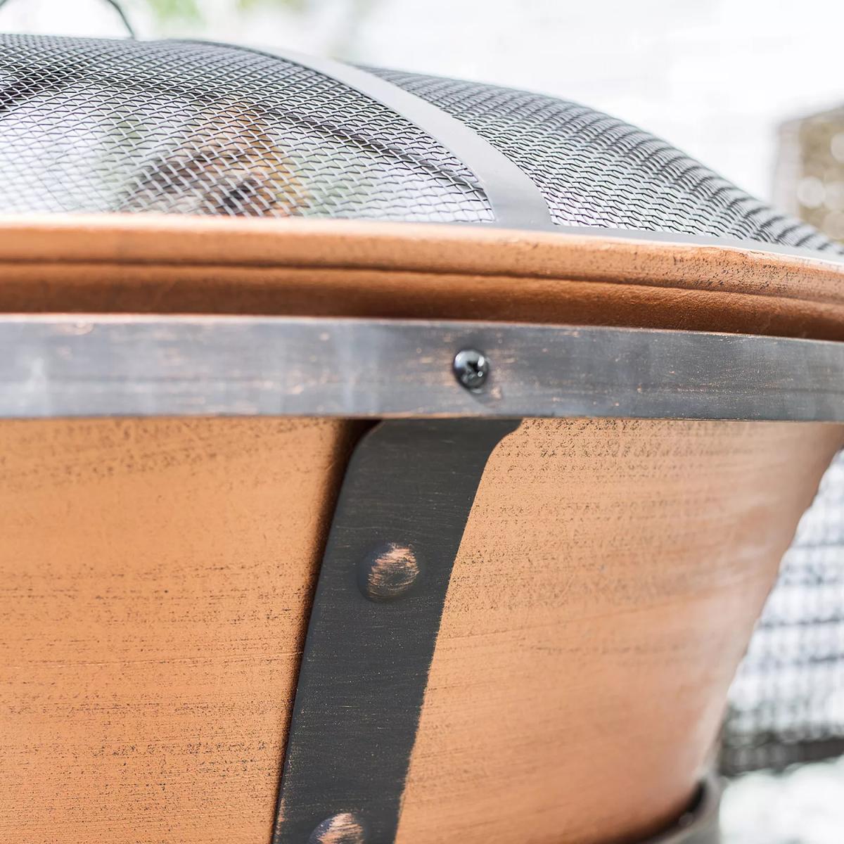 Combining both traditional and modern appeal, the Westonbirt firepit from La Hacienda is sure to create a warm glow in the garden or on the patio, to keep friends and family happy. Made from steel with an on-trend copper finish and classic cast iron detailing, this large, round firepit allows for a 360-degree view of the fire, making it perfect for sunset and night-time gatherings. This firepit set includes a protective mesh cover, a log grate and a matching metal tool to stoke the fire and shift logs. Key features: Made from durable steel with cast iron detailing Copper finish in high-temperature paint Protective mesh cover Matching firepit tool and log grate included Good to know: For outdoor heating only. Use untreated wood and logs Do not burn coal or charcoal in this appliance Do not overload with fuel. One or two logs is recommended (800g-1.6kg) The recommended amount of fuel must not be exceeded by greater than 50% Want to see it first? You may want to see and get a feel for the product in one of our shops before ordering. We'll be able to tell you where the range you'd like to view is on display.