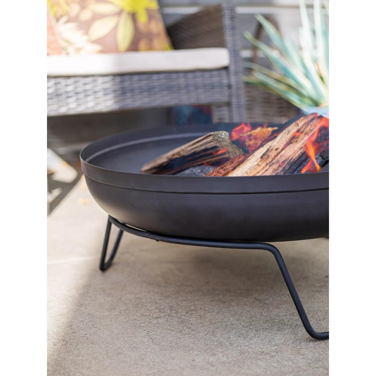 A contemporary minimalist design and focal point for the garden or patio, the Yatesbury firepit from La Hacienda radiates warmth. Ideal for extending time outside on chillier days and nights, the bowl-shaped firepit is made from robust and splash-proof steel. Key features: Contemporary minimalist bowl design Made from durable steel 360-degree view of the fire Three sturdy legs Easy to assemble Good to know: Do not use on timber decking For outdoor heating only. Use untreated wood and logs Do not burn coal or charcoal in this firepit Do not overload with fuel. One or two logs is recommended (800g-1.6kg) The recommended amount of fuel must not be exceeded by greater than 50% Want to see it first? You may want to see and get a feel for the product in one of our shops before ordering. We'll be able to tell you where the range you'd like to view is on display.