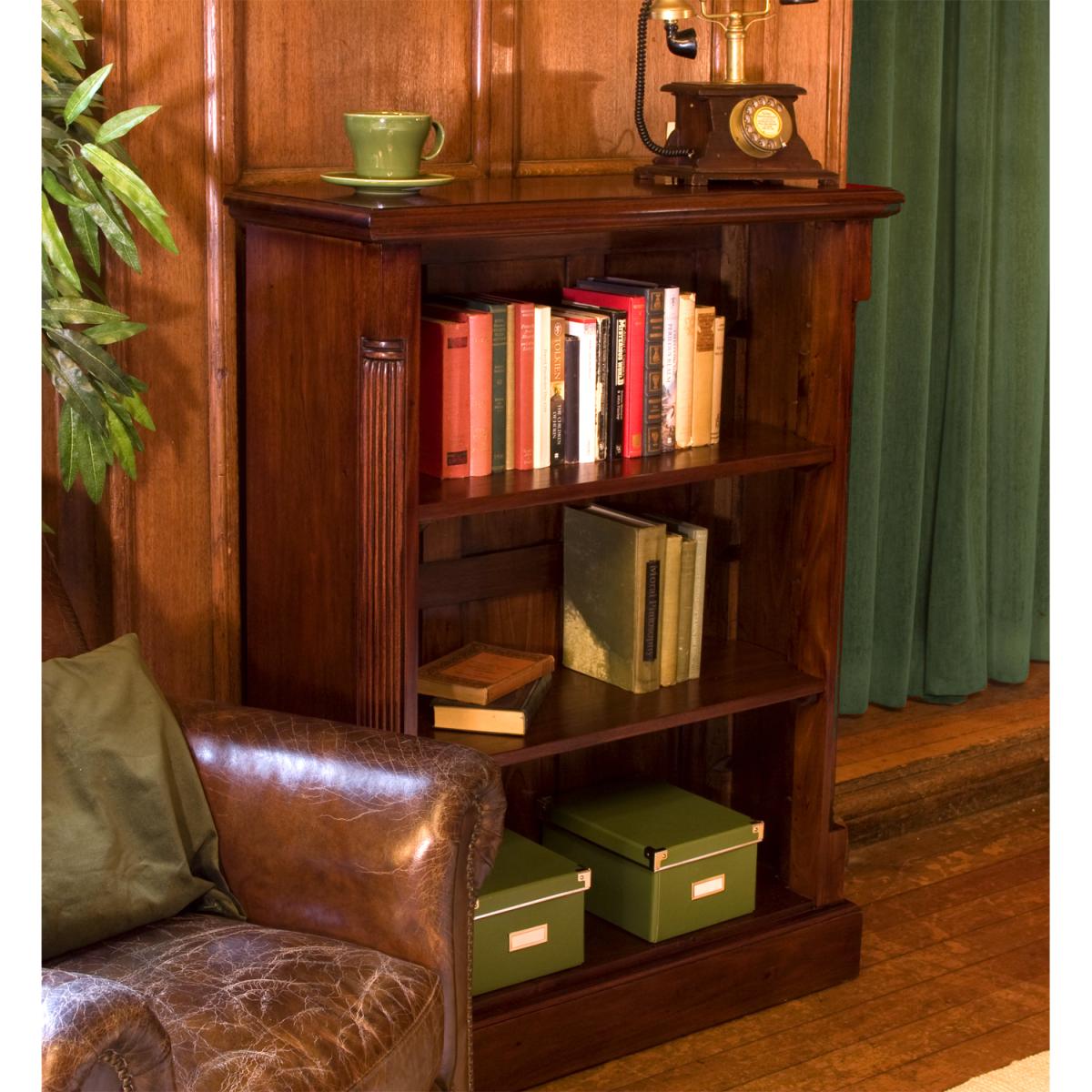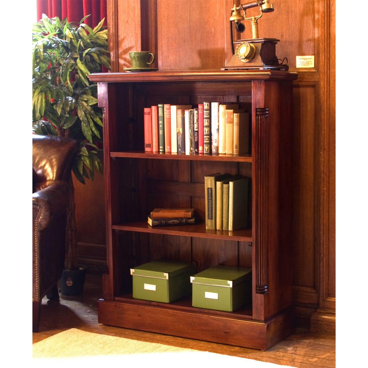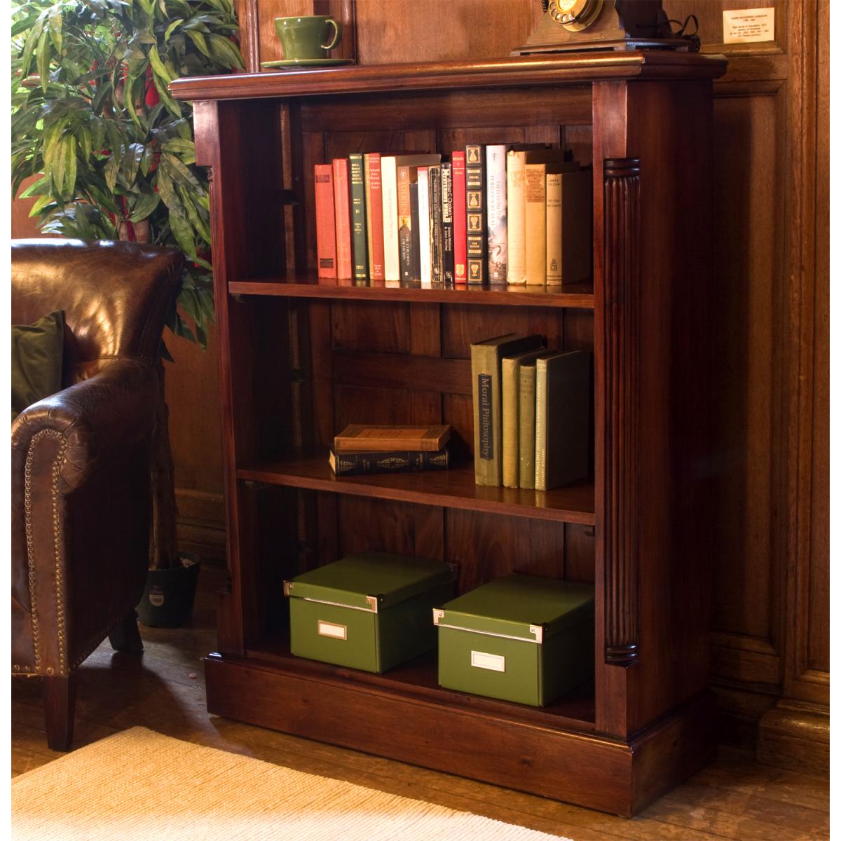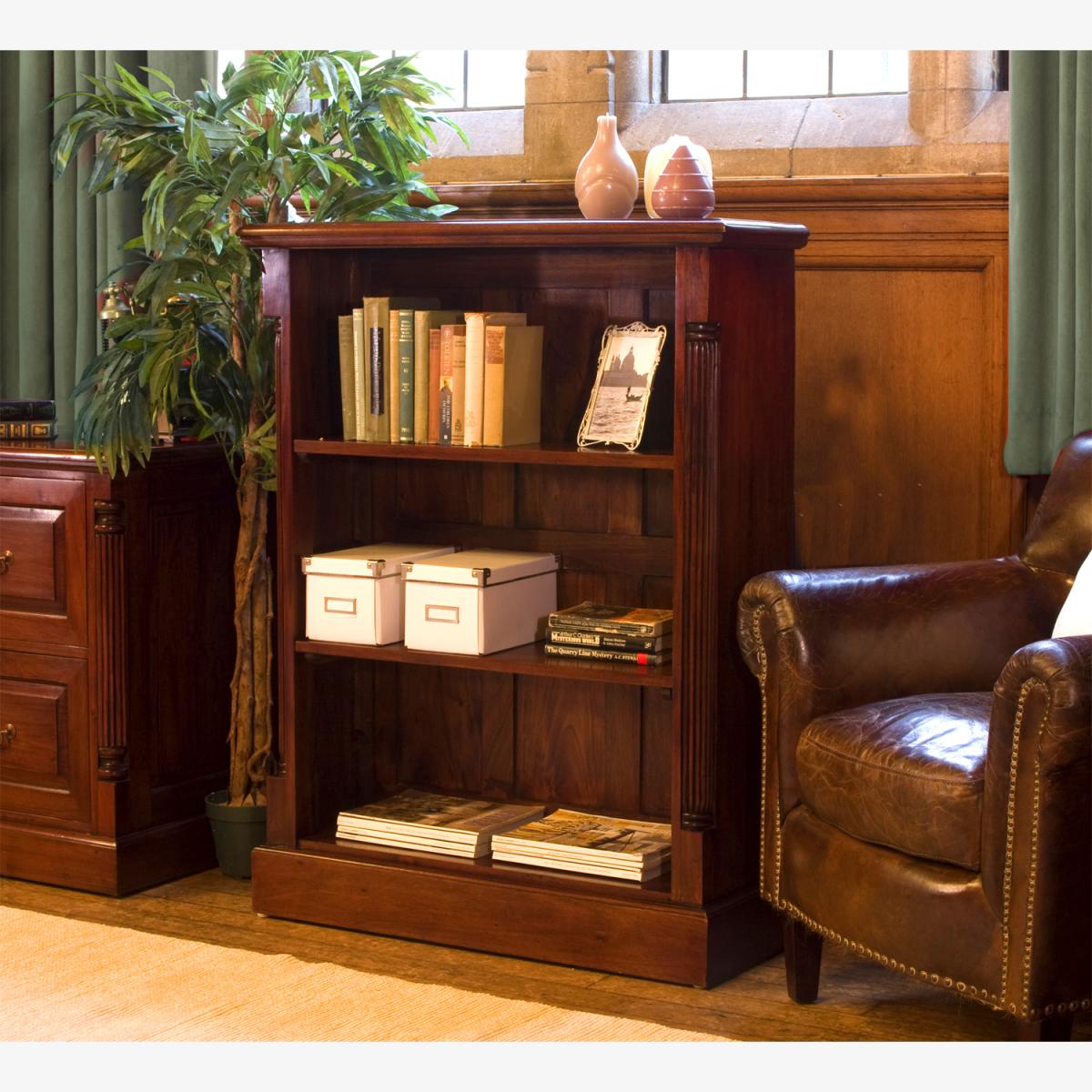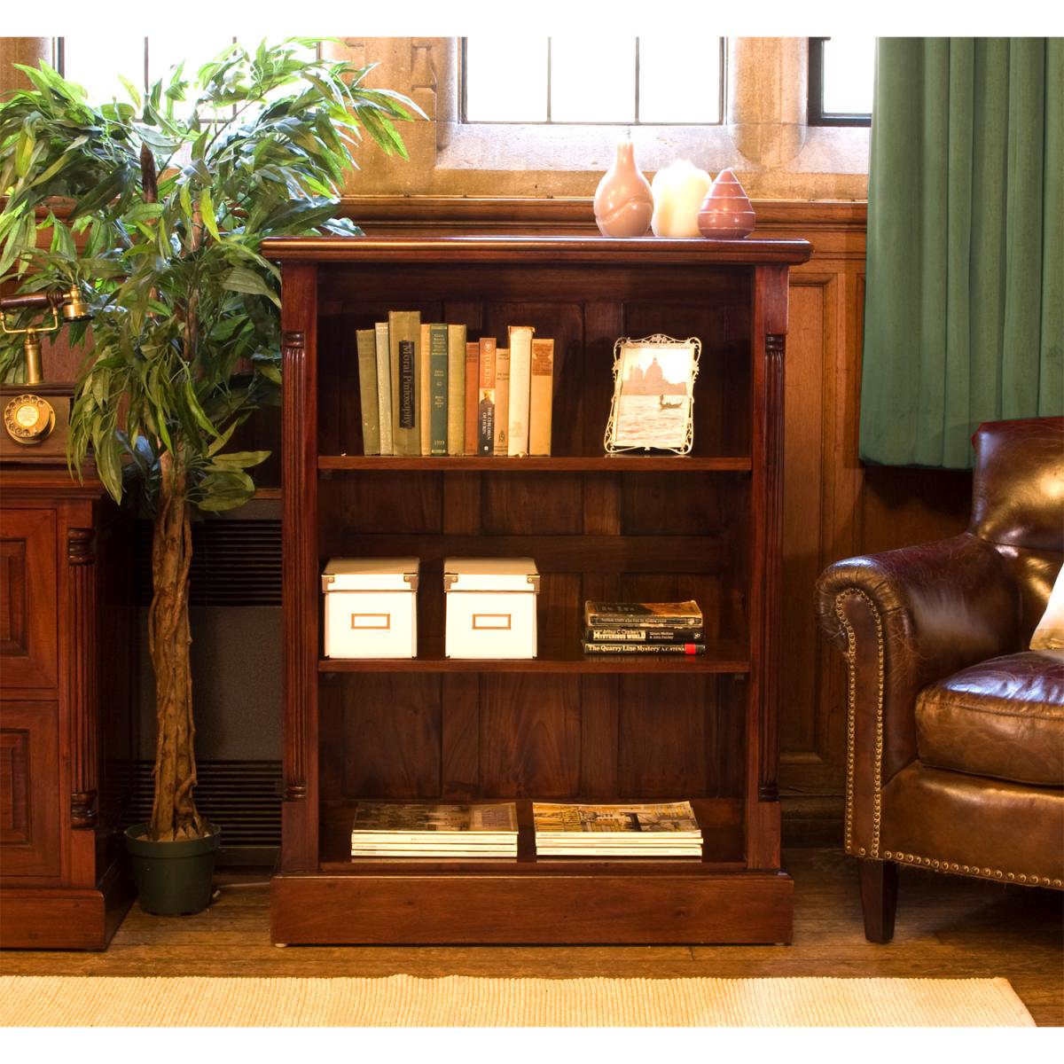 This low open fronted bookcase is made with solid mahogany and has 2 adjustable shelves to store your books or showcase your possessions on. The La Roque range is a classic yet contemporary collection of furniture. This is a very low maintenance piece of furniture with exquisite detail including handcrafted fluted sides, nylon feet to protect your floor and a mid-gloss lacquer finish.