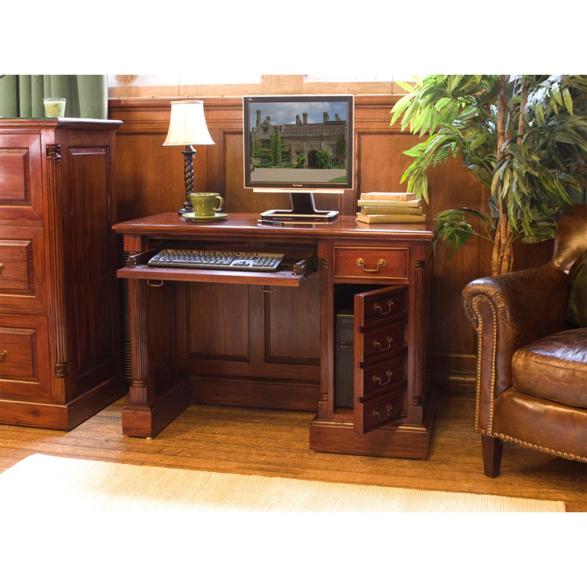 La Roque Single Pedestal Computer Desk - Rich Mahogany