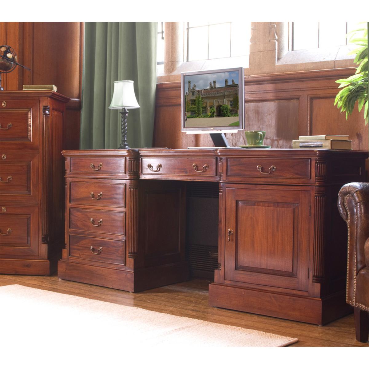 La Roque Twin Pedestal Computer Desk - Rich Mahogany