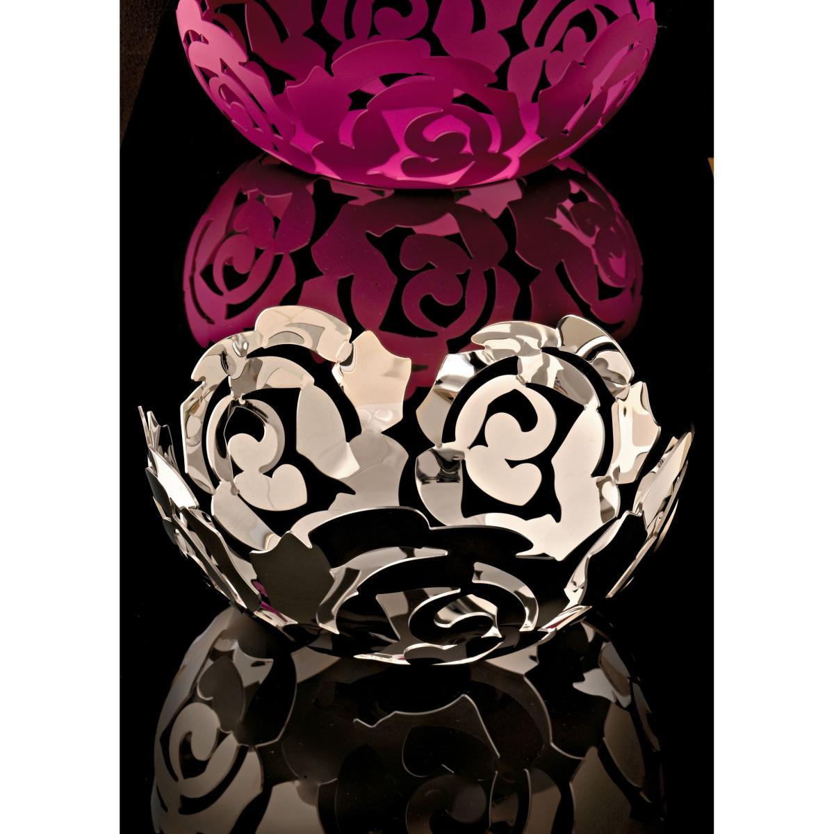 Emma Silvestris designed another design for us which is applied to the 21 and 29 cm bowls of the Mediterraneo series. The product's name "LA ROSA" (THE ROSE) directly refers to the theme of the design itself. The metaprojectual allusion is a reference both to grace and femininity and to regeneration and harmony. (isn't it metaproject?) Also in this case the technique of perforation by laser cutting and subsequent bending has been used. Available in 18/10 stainless steel and in coloured steel with a new purple colour.