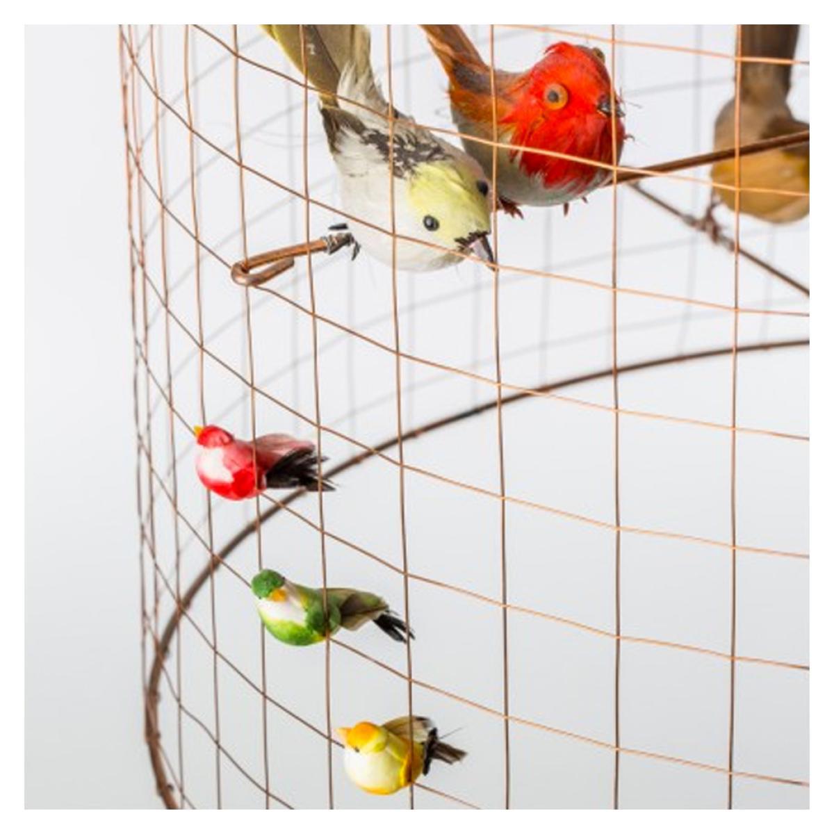 Designed in France by Mathieu Challières, the La Volière Two-Tier Pendant Lamp showcases a magical aviary-inspired piece of art, perfect for accenting any home with a vibrant menagerie of colour. Handmade in a Parisian atelier, this elegant and whimsical pendant has been individually crafted by hand with delicate copper wire, while precious decorative birds, made with real hand-dyed goose feathers, perch on the bars of its shade. With influences ranging from the baroque to the contemporary, Mathieu Challières has created a light that references vintage opulence and contemporary style simultaneously. Each La Volière Two-Tier Pendant Lamp is completely unique and would make an enchanting addition to any home. Please note that due to handcrafting, the positioning of the birds and colours may vary slightly. Available in both single and double tiers. Dimmable with a maximum drop of 140cm; requires a 40W E27 bulb (not included).