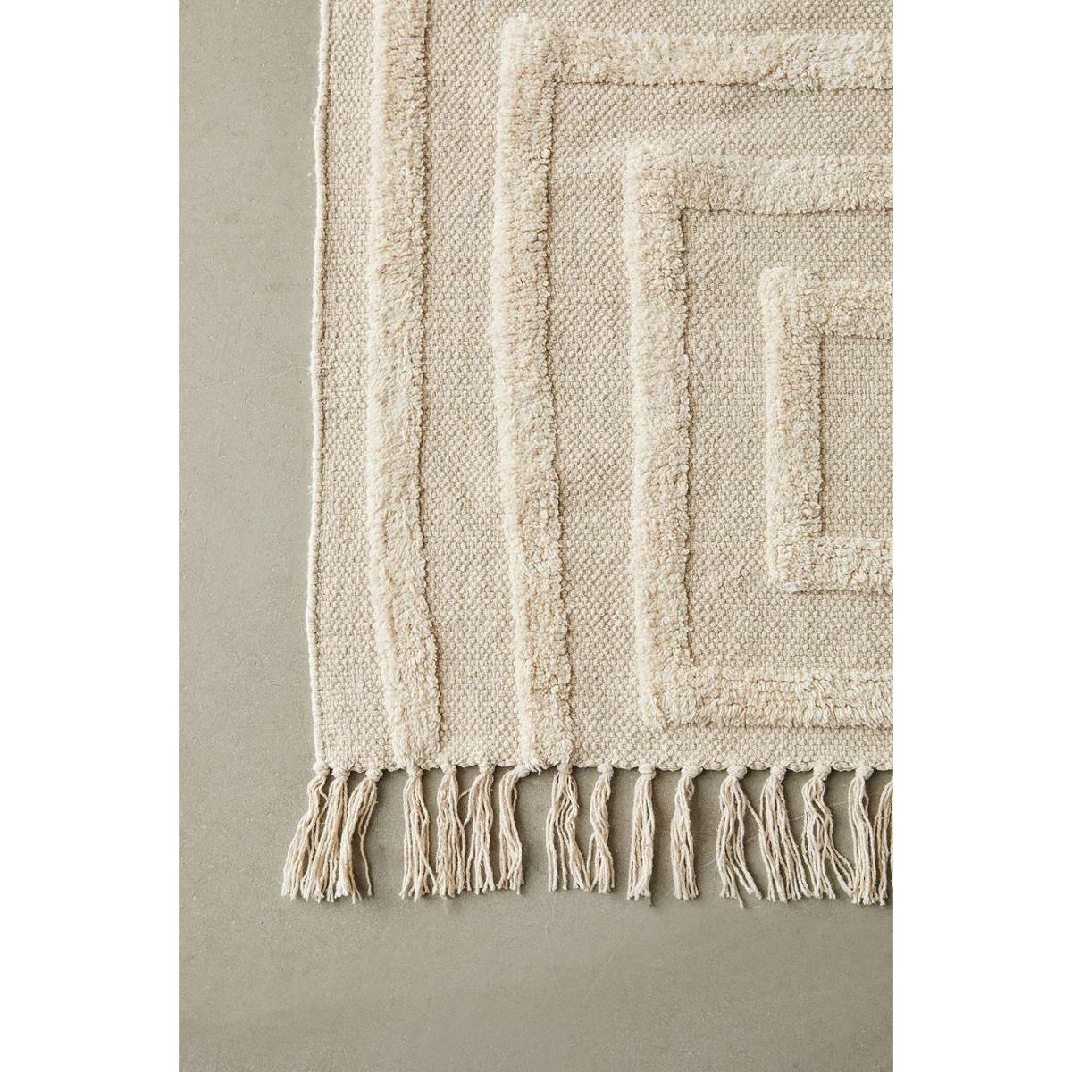 Multi-textured rug, the perfect boho addition to any space. Complete with a tufted cotton labyrinth-inspired geometric print in tonal wash with a textured base. Topped with tasselled lining to the edges. **Content + Care** \- 100% Cotton \- Spot clean **Size** \- 152.4cm x 213.3cm (5ft x 7ft)