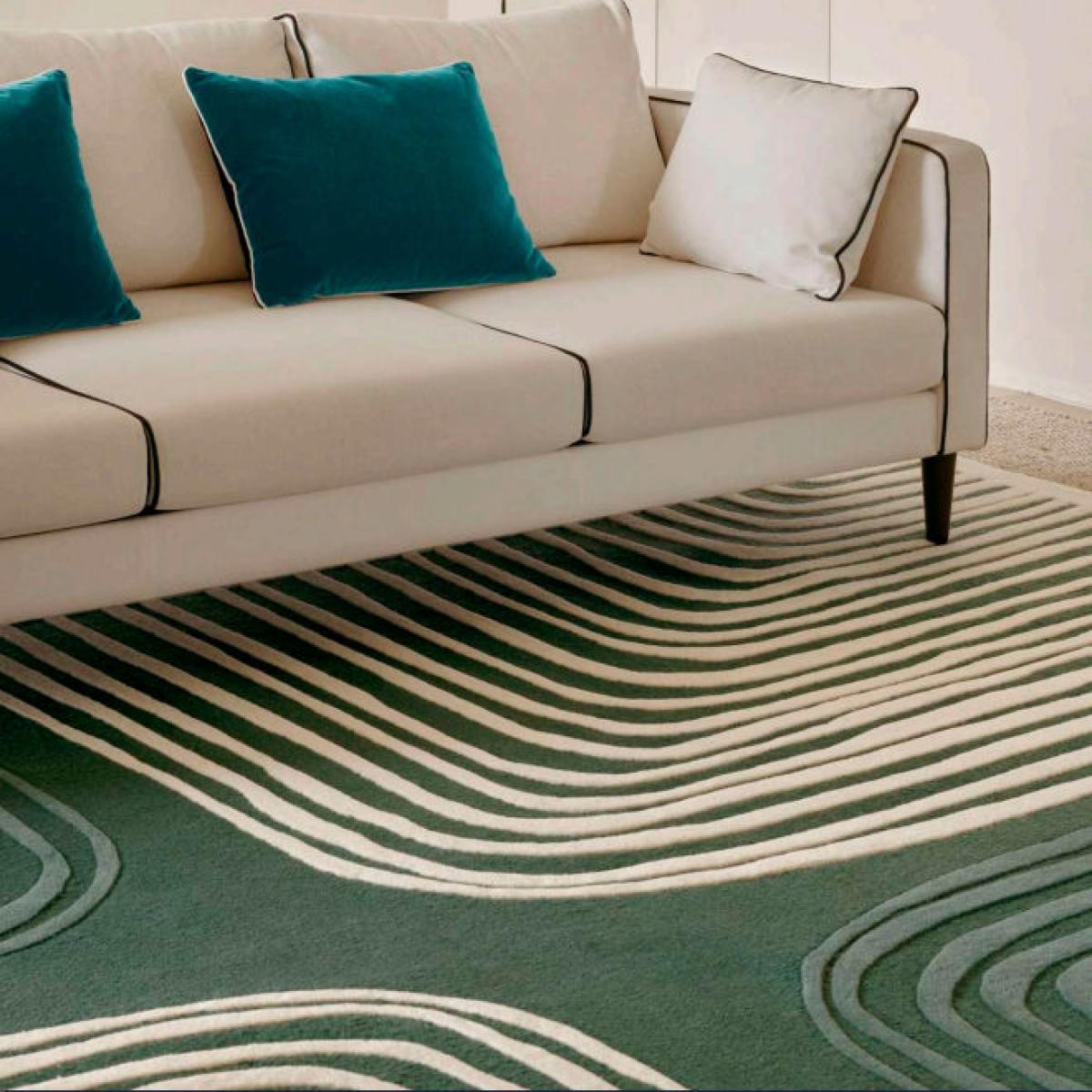 I love this Labyrinthe rug for its bold yet adaptable design. The green hue adds a fresh, calming touch that works well in both modern and eclectic interiors. It’s a great statement piece for living rooms or bedrooms, especially when paired with neutral or pared-back furniture to let the pattern stand out. As it’s hand-tufted, it offers a lovely texture underfoot, making it both practical and visually interesting. For styling tips, consider layering it over a simple wooden floor or pairing with linen upholstery for a relaxed, contemporary look. It also works well in spaces that need a pop of colour without overwhelming the design - perfect for adding personality to a minimalist scheme.