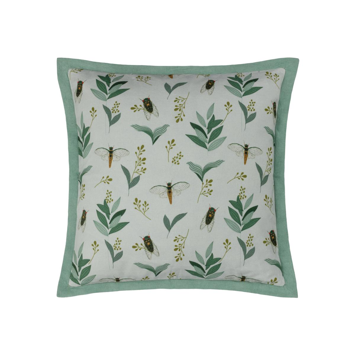 Inspired by nature, the Lacewing cushion features flying insects as they busily fly around the surrounding sage green florals, with a fresh on-trend white background and a complementing Oxford edge trim. Bring the outdoors in with this fresh and natural printed cushion.