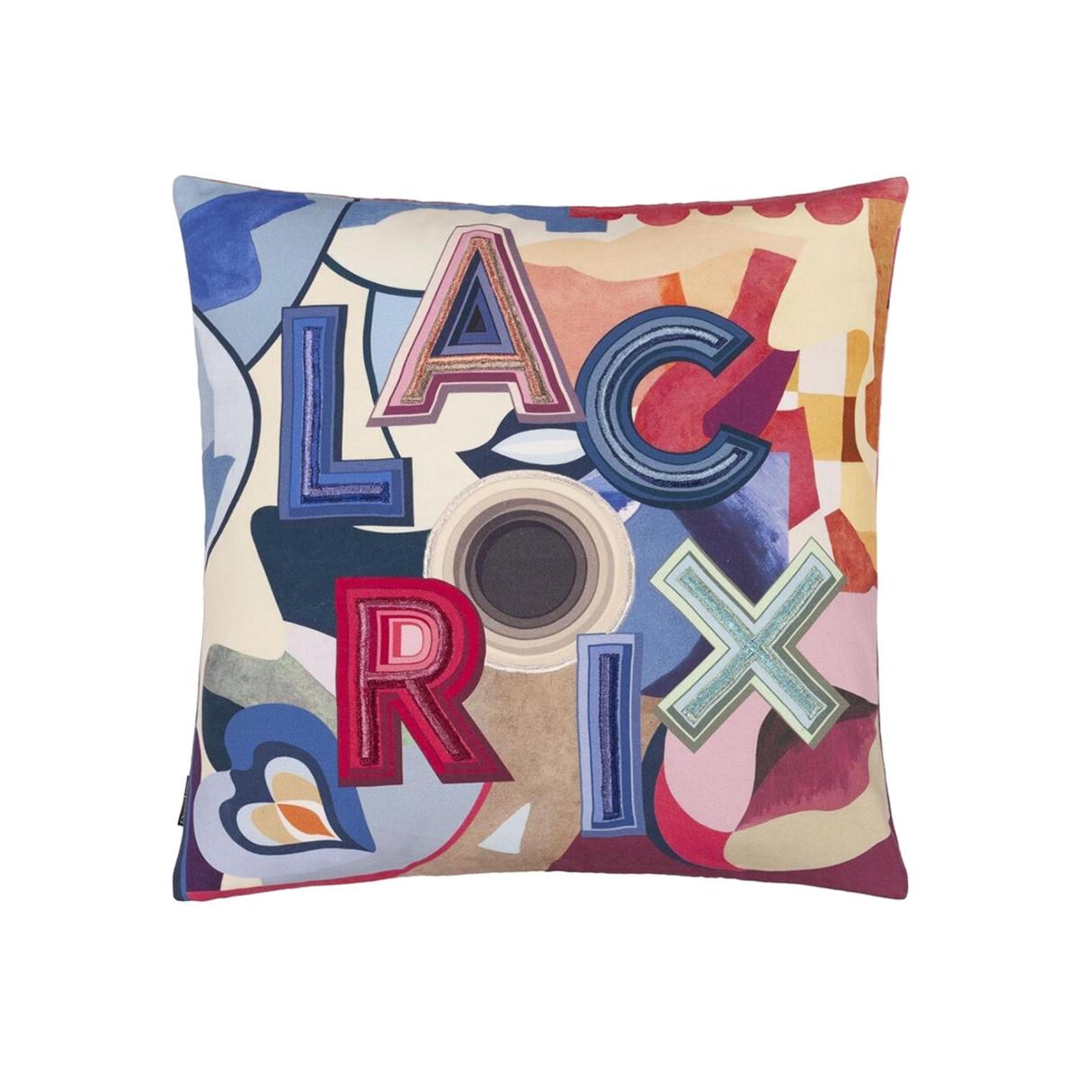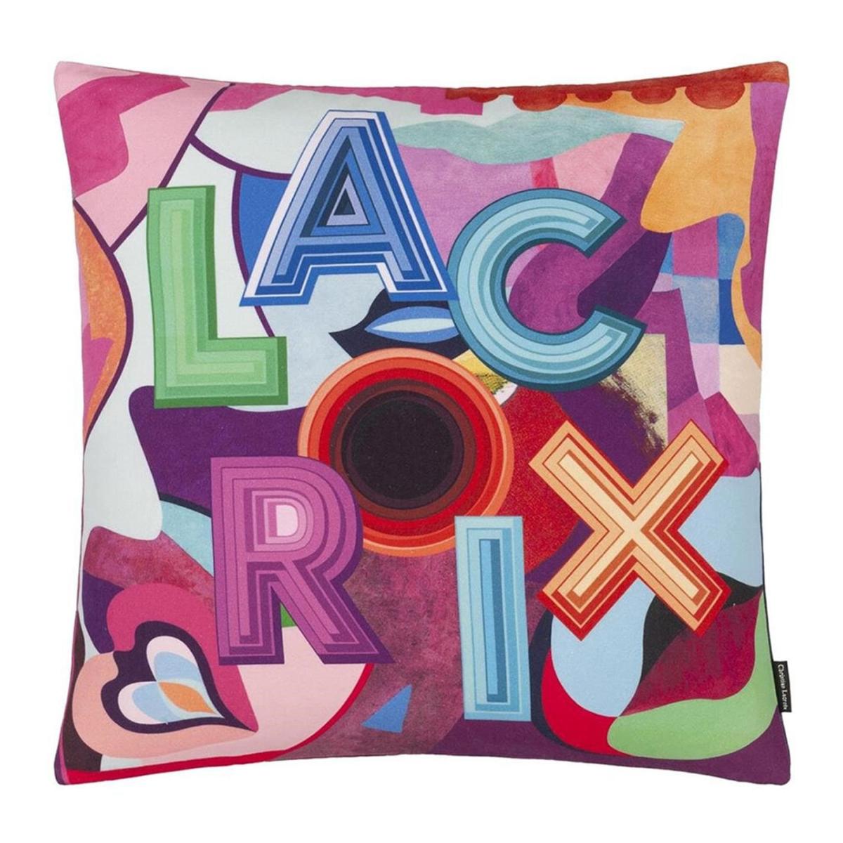 Indulge in the Christian Lacroix Maison universe with this striking oversized square pillow. Created out of sleek cotton satin, this lavish designer cushion has digitally printed Lacroix letters, enhanced with embroidered highlights. Christian Lacroix is the eponymous fashion house by the world-renowned French designer. Lacroix's designs combine luxury and insouciance. He prefers artisanal trades, fringe, bead, and embroidery. His work is characterised by a strong sense of colour, and patterns mix.