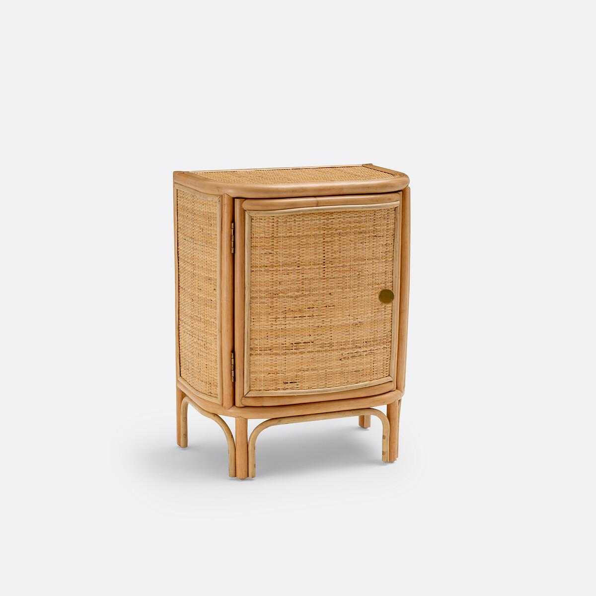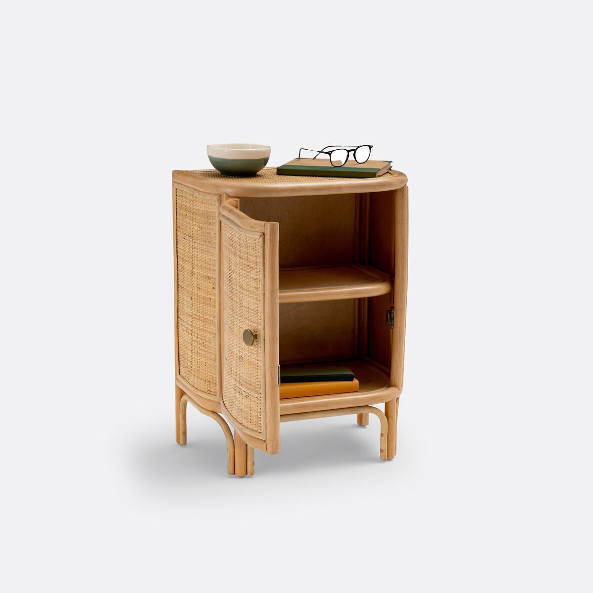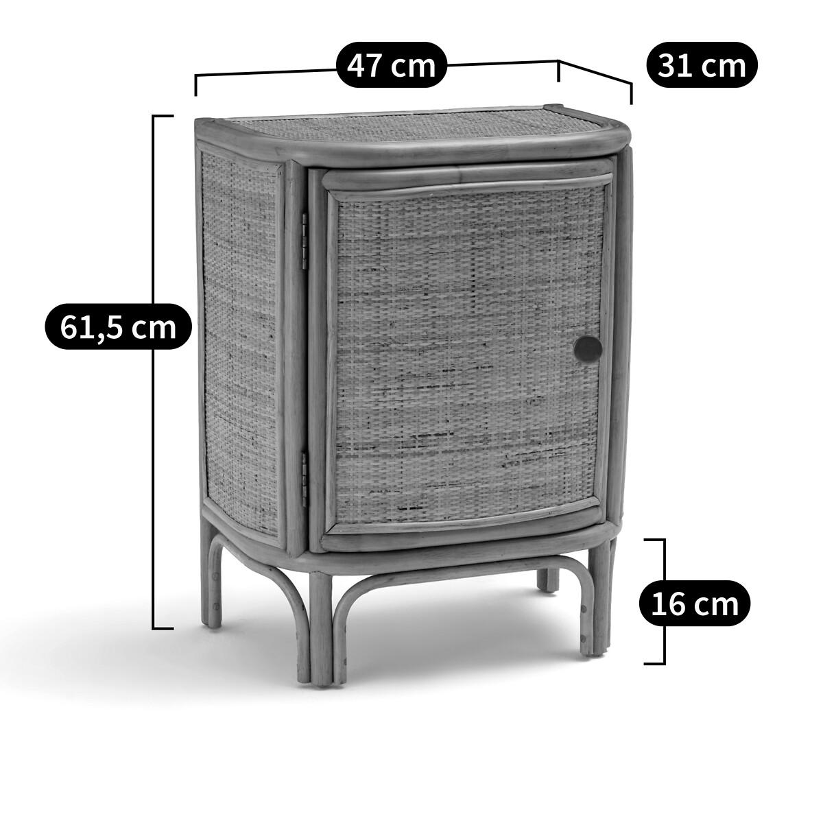 You will love the Ladara range and its bohemian side. Combining rattan cane and woven rattan, this bedside table brings a charming vintage note to the bedroom. Form a winning duo with the headboard from the same range! Final touch, it is handcrafted. Designed by La Redoute Intérieurs. Product Details • In rattan cane and woven rattan, nitrocellulose finish • Plywood back panel • Brass-finish metal knob handle • 1 door opening to the left • 2 fixed shelves inside • Delivered pre-assembledDimensions. Overall • Width: 47cm • Height: 61.5cm • Depth: 31cm • Height of legs: 16cm • Weight: 4.7kg. Usable space • Inside cupboard: L35 x D25.5 x H20.5cmDelivery:. Sold pre-assembled. Available for home delivery. Note! Please check that all access points are large enough to accommodate your delivery (doors, stairs, lifts). Dimensions and weight of parcel1 parcel • L50 x H65.5 x D35cm. 7.4kg