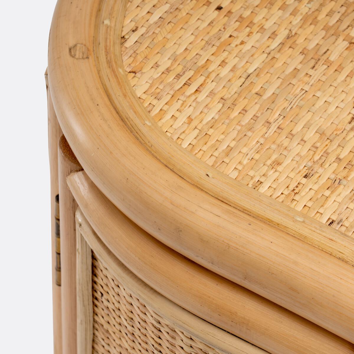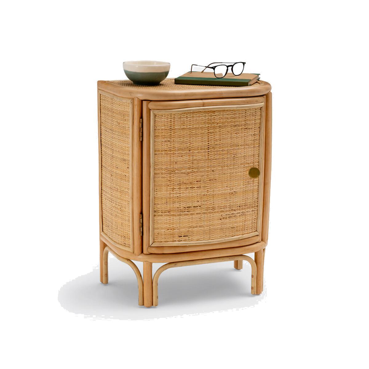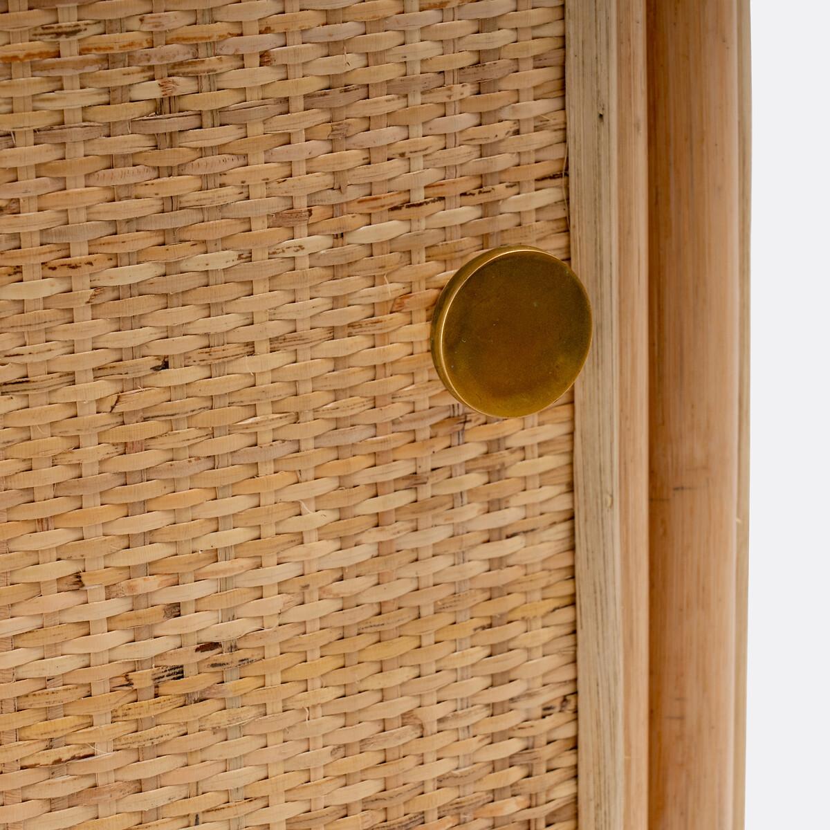 You will love the Ladara range and its bohemian side. Combining rattan cane and woven rattan, this bedside table brings a charming vintage note to the bedroom. Form a winning duo with the headboard from the same range! Final touch, it is handcrafted. Designed by La Redoute Intérieurs. Product Details • In rattan cane and woven rattan, nitrocellulose finish • Plywood back panel • Brass-finish metal knob handle • 1 door opening to the left • 2 fixed shelves inside • Delivered pre-assembledDimensions. Overall • Width: 47cm • Height: 61.5cm • Depth: 31cm • Height of legs: 16cm • Weight: 4.7kg. Usable space • Inside cupboard: L35 x D25.5 x H20.5cmDelivery:. Sold pre-assembled. Available for home delivery. Note! Please check that all access points are large enough to accommodate your delivery (doors, stairs, lifts). Dimensions and weight of parcel1 parcel • L50 x H65.5 x D35cm. 7.4kg