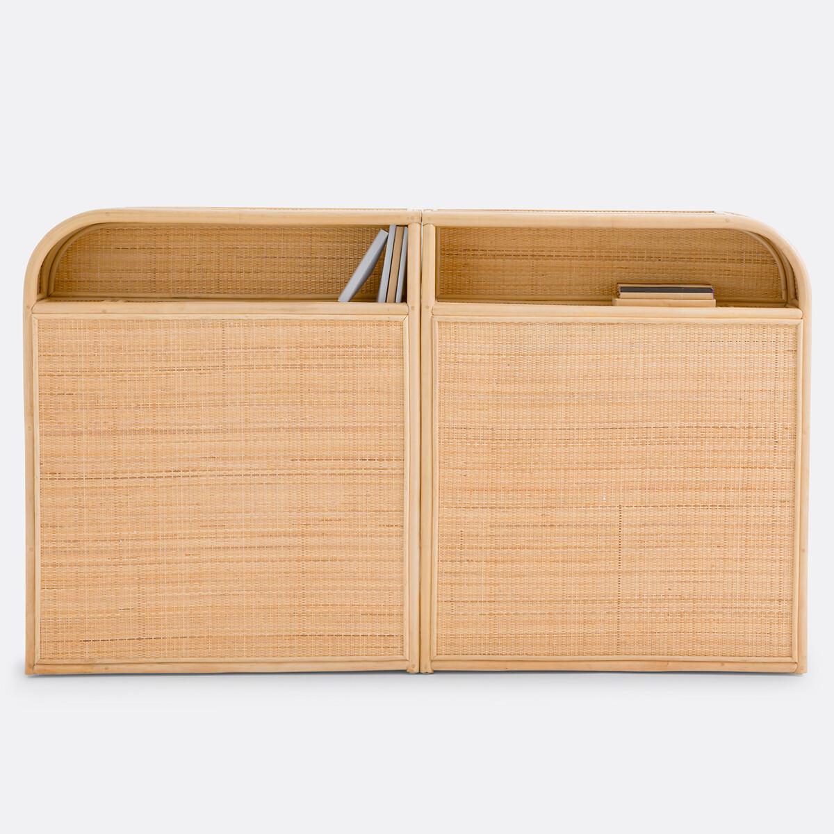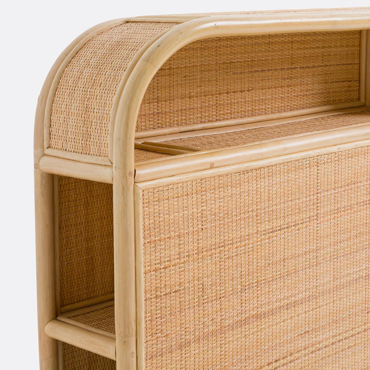 The well-designed Ladara headboard is part of our Les Ingénieux collection. Creations full of ideas to make life simpler and everyday life more beautiful, imagined by our designers in France.. Combining rattan cane and woven rattan, Ladara brings a vintage, trendy and poetic note to the bedroom. For a beautiful bedroom and beautiful nights. Why you'll love this product • To have everything at your fingertips • Its storage compartments provide additional storage space and save space in the bedroom: both bedside table, mini library... • Made in 2 parts to be assembled to be easier to move (change of room, moving, etc.) • The softness of its rounded shape • The charm of artisanal manufacturing. Product Details • 2 storage compartments across the width and 3 storage compartments on each side • Structure in rattan cane and pine plywood covered with woven rattan • Nitrocellulose varnish finish • Artisanal craftsmanship • Wall fixing recommended (screws and dowels not supplied)DimensionsOverall Bed size 160cm (King) • Width: 167cm • Height: 100cm • Depth: 23cm • 2 separate parts to assemble, width of each element: 83cm • Weight: 17.1kg. Usable space • Compartments along the length: L80 x H17 x D19cm • Compartments on either side: L15 x H23 x D19cmDelivery:. Sold pre-assembled. Note! Please check that all access points are large enough to accommodate your delivery (doors, stairs, lifts).Dimensions and weight of parcel1 parcel • L104 x H48 x D88cm. 24.5kg
