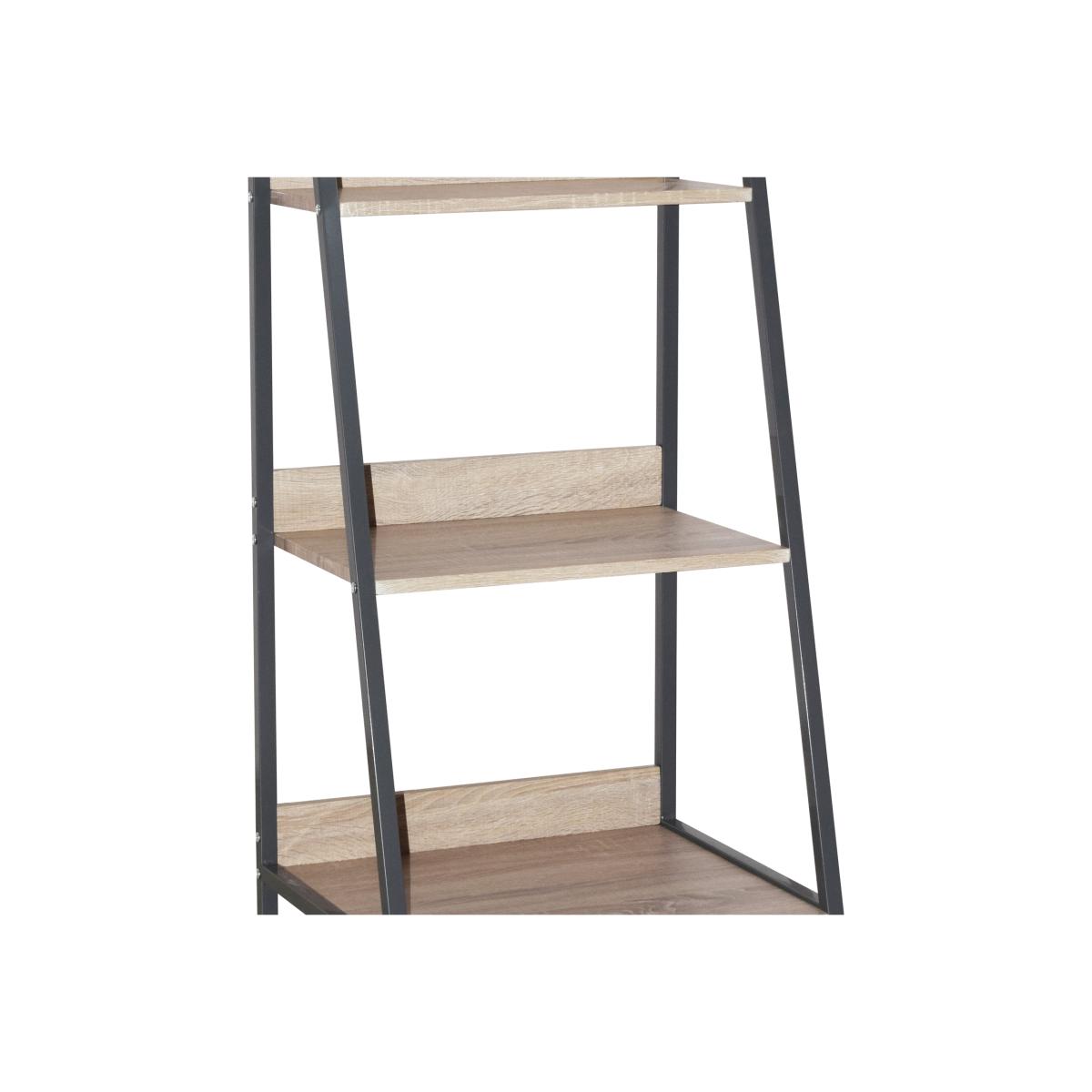 Ladder bookcase unit with oak effect and grey metal uprights - Oak effect