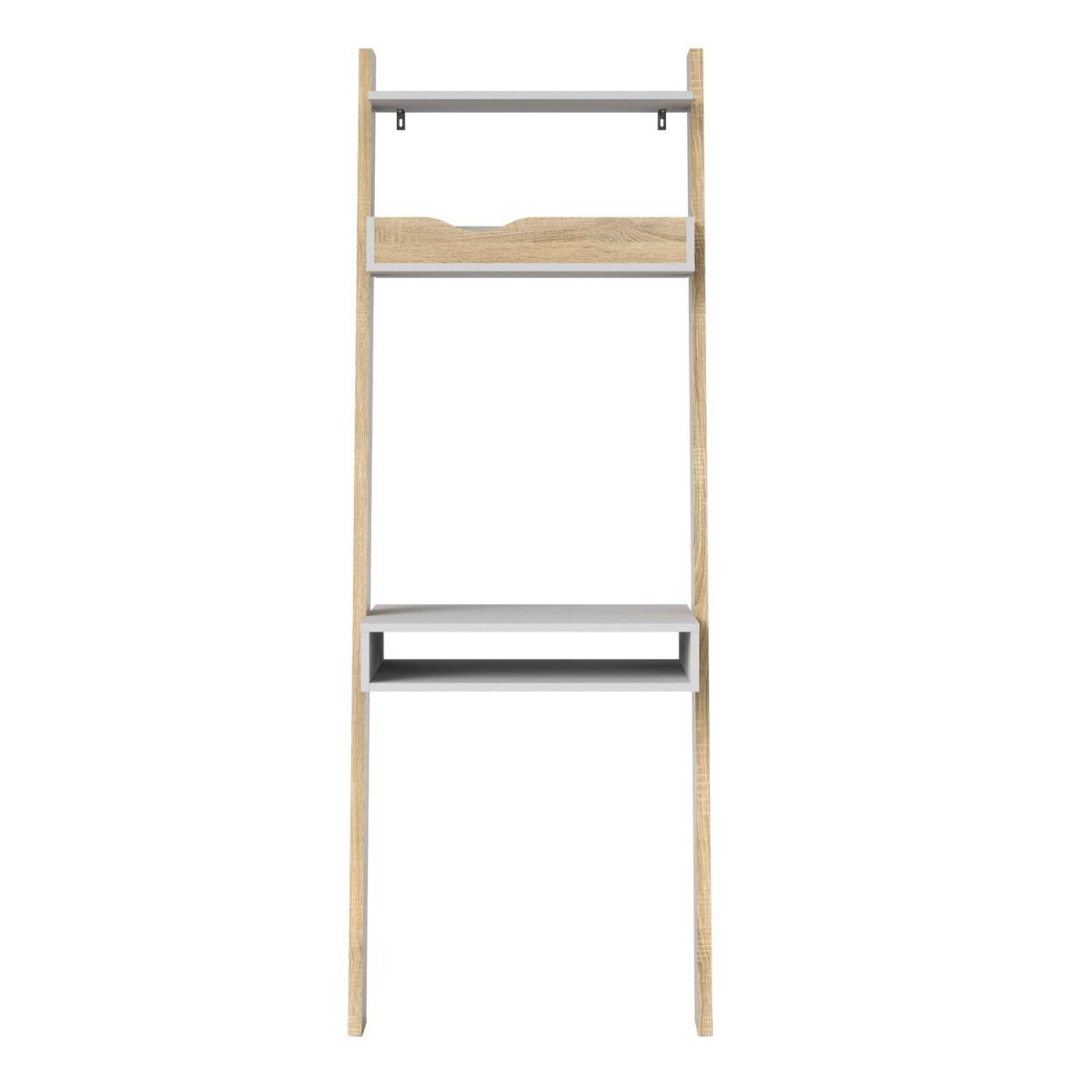 Dimensions H180.1 x W65.1 x D48.1 cm. The Oslo leaning desk has authentic Scandinavian styling with a modern twist. Add extra dimension and save space in your office. Features. The Oslo desk features places to neatly store your office essentials. High quality fixings and hinges used throughout. Made from high quality laminated board which is resistant to damage and scratches moisture and high temperature Metal brackets for fixing the desk securely to the wall. Finished in white and oak to ensure it will suit most interiors. Assembly required..