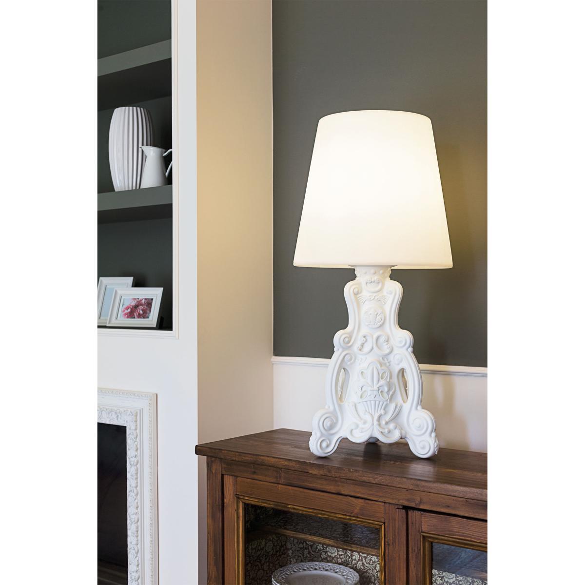 The table lamp, Lady of Love is part of the original Design of Love Collection, by Graziano Moro and Renato Pigatti. The unmistakable style of the Lady of Love, combines a classical and elegant look: creating emotions, charm and is a magnet for attention. From the inspiration of the classical shade, it is an original reinterpretation of the old baroque lamp. The large lampshade is realised with a particular texture finishing, with elegant and pleasant-to-touch embroidery-like decoration.