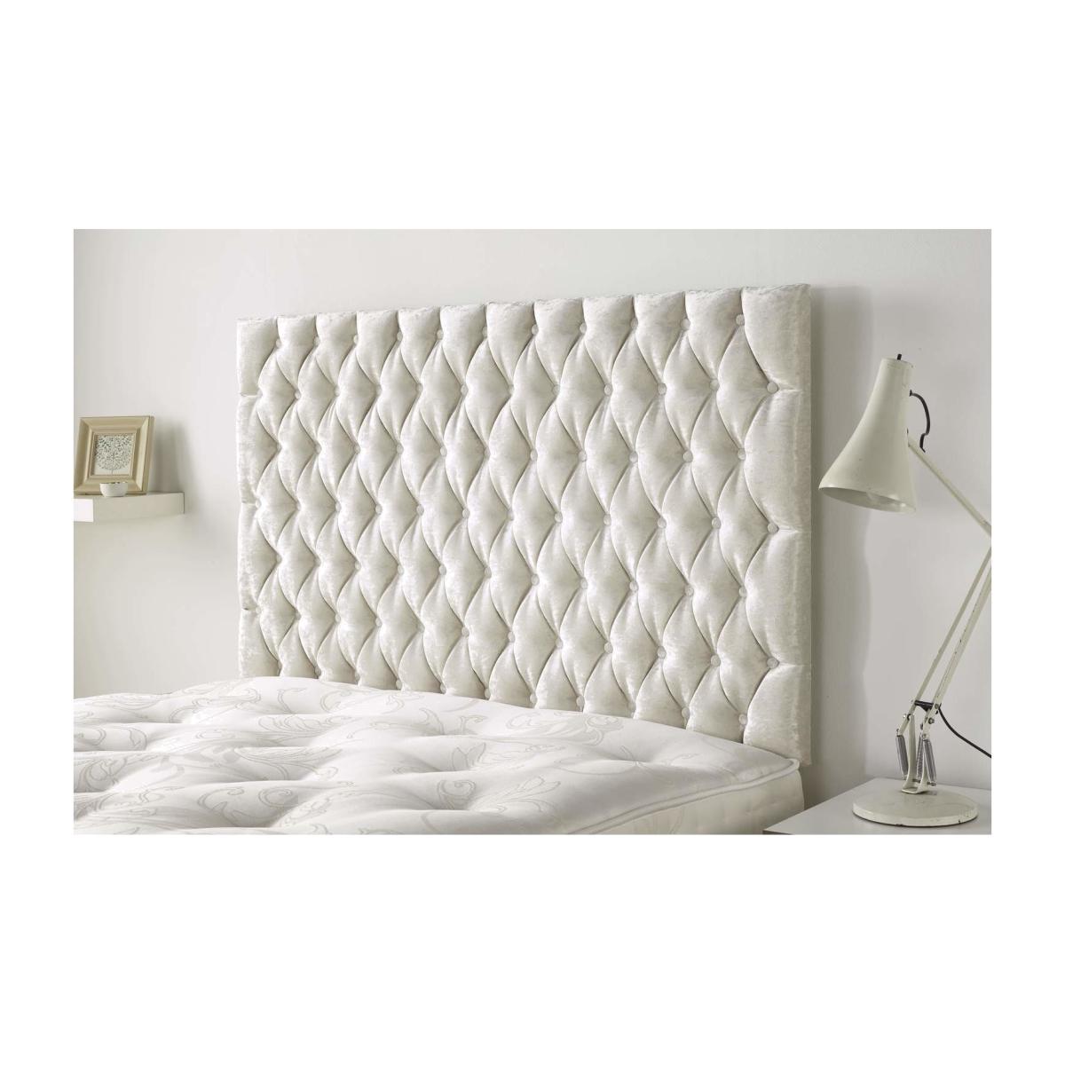 Handcrafted in the UK Standard UK King 5ft Sturdy 15mm thick wood panel Plush 35mm foam padding Solid Mahogany struts. In Cosi Velvet Pearl Fabric DELIVERY RESTRICTIONS Please note we are only able to ship Aspire to UK Mainland postcodes. We are unable to ship to Ireland, Northern Ireland, Scottish Highland or the Channel Islands.