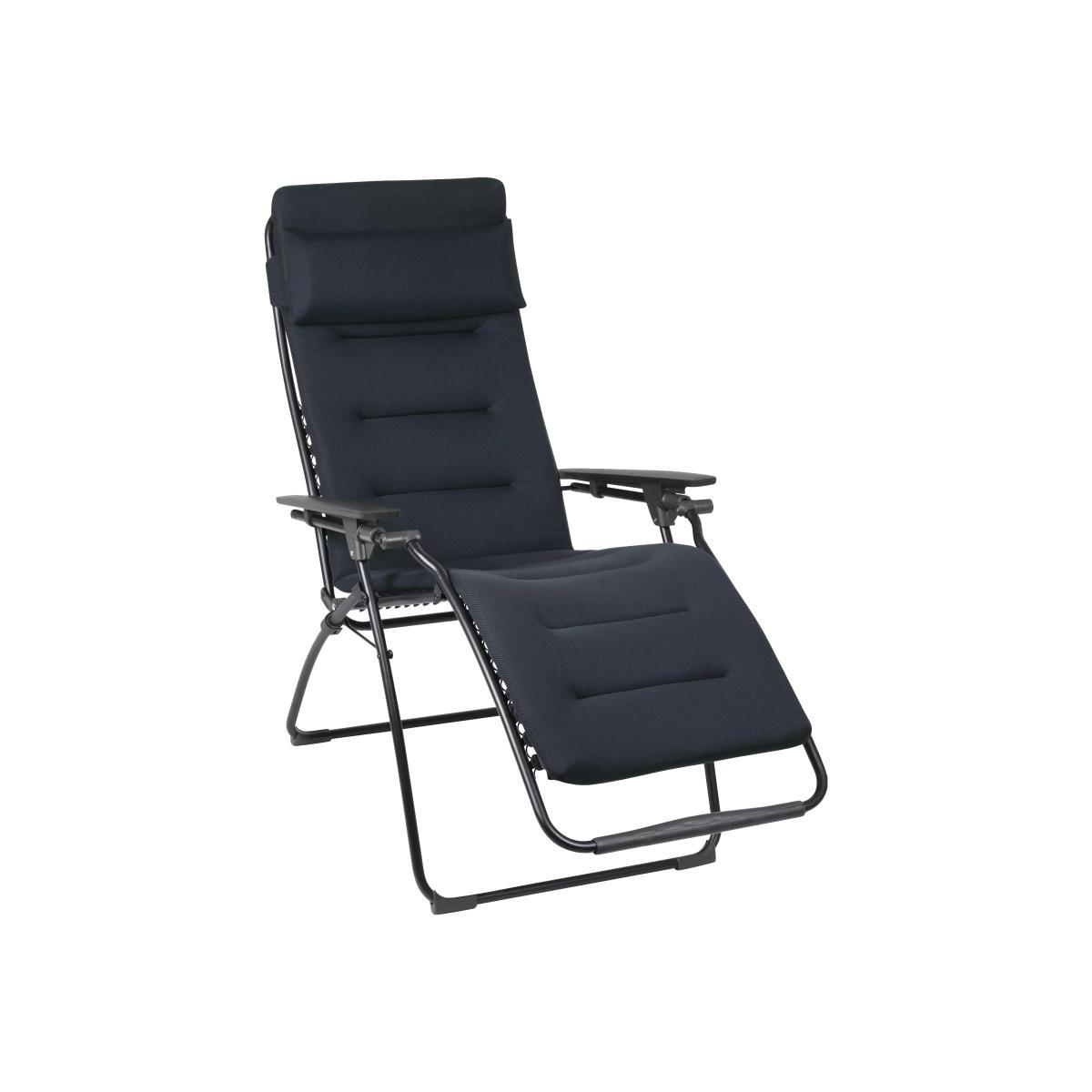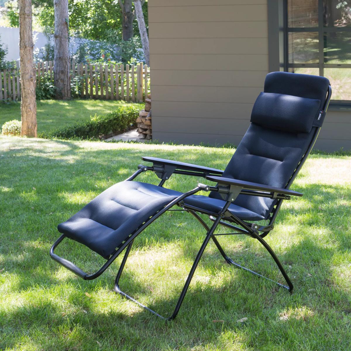 Foldable, classic reclining design Patented innovation Adjustable head rest Firm comfort & back support Resistance to UV exposure Easy to maintain With the Futura Air Comfort®, you can appreciate the soft comfort of a padded lounger both indoors and outdoors. It offers an ideal relaxation position with the essential principle being that it positions the legs slightly above the heart to optimise your rest. The "3 layer" pad combines breathable and permeable materials to offer unrivalled comfort, unbelievable softness and quick drying time. And with the Lafuma patented Elastomere clip suspension, you can easily install or un-clip the pad for maintenance. Please note: not all our ranges are on display in our shops.