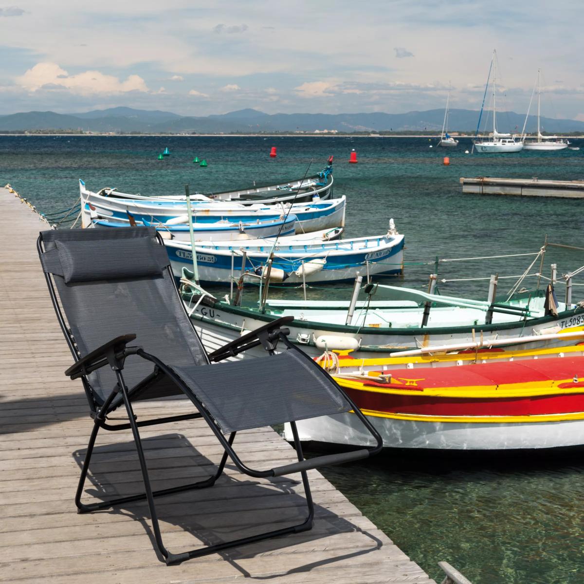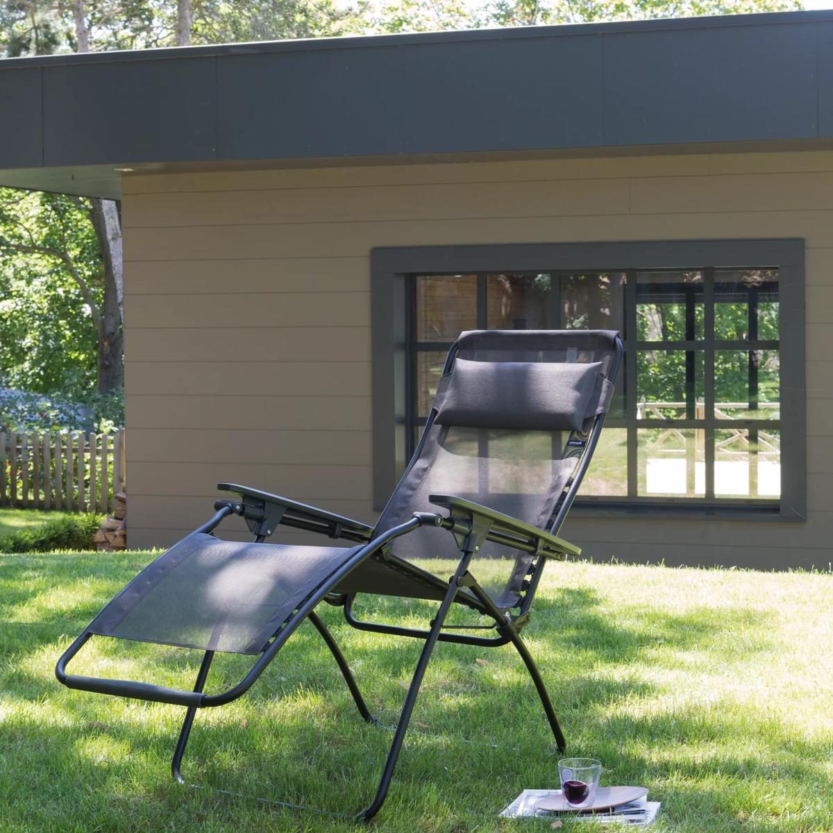 Multi-position Removable, adjustable headrest Compact size when folded makes storage easier This lounge chair has been designed to offer the ideal relaxation position. The principal position is to rest the legs just above the heart for optimal rest. You can easily change position as you desire, and raise the seat up very simply: the armrests remain fixed which allows for firm pressure when you want to stand up out of the chair. And its revolutionary clip suspension uses elastomere clips, which form the link between the tubing and the fabric, to offer firmer comfort and excellent back support. About the material - Batyline® Duo 1 warp thread / 2 weft thread weave Original style effects Durable - resistance to UV exposure and ripping Open weave promotes an ultra quick drying time Anti-fungal treatment prevents mildew Easy to clean Want to see it first? You may want to see and get a feel for the product in one of our shops before ordering. We'll be able to tell you where the range you'd like to view is on display.